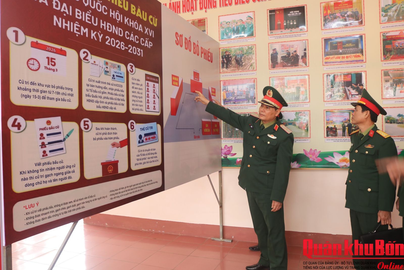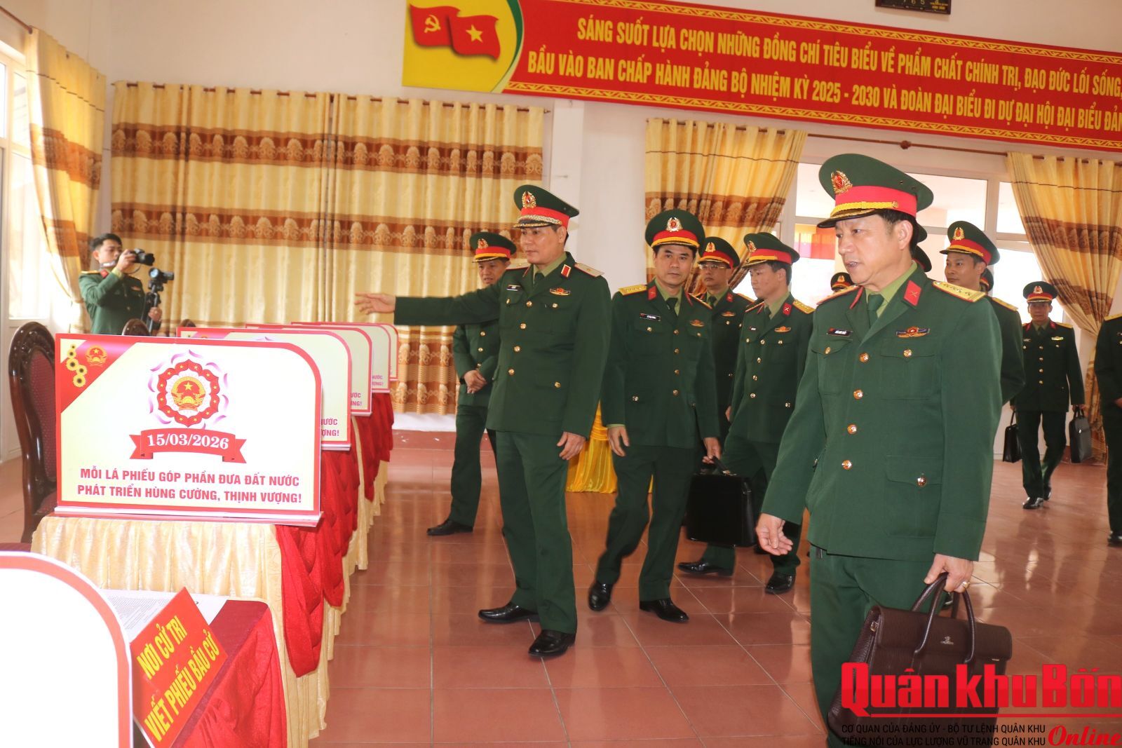 Chiều ngày 11/3/2026, Đoàn công tác Quân khu do Thiếu tướng Lê Văn Vỹ, Phó Tham mưu trưởng Quân khu làm trưởng đoàn đã tiến hành kiểm tra kết quả triển khai thực hiện công tác chuẩn bị bầu cử đại biểu Quốc hội khóa XVI và bầu cử đại biểu Hội đồng Nhân dân (HĐND) các cấp nhiệm kỳ 2026 - 2031 tại Lữ đoàn Pháo binh 16 và Lữ đoàn Tăng thiết giáp 206.