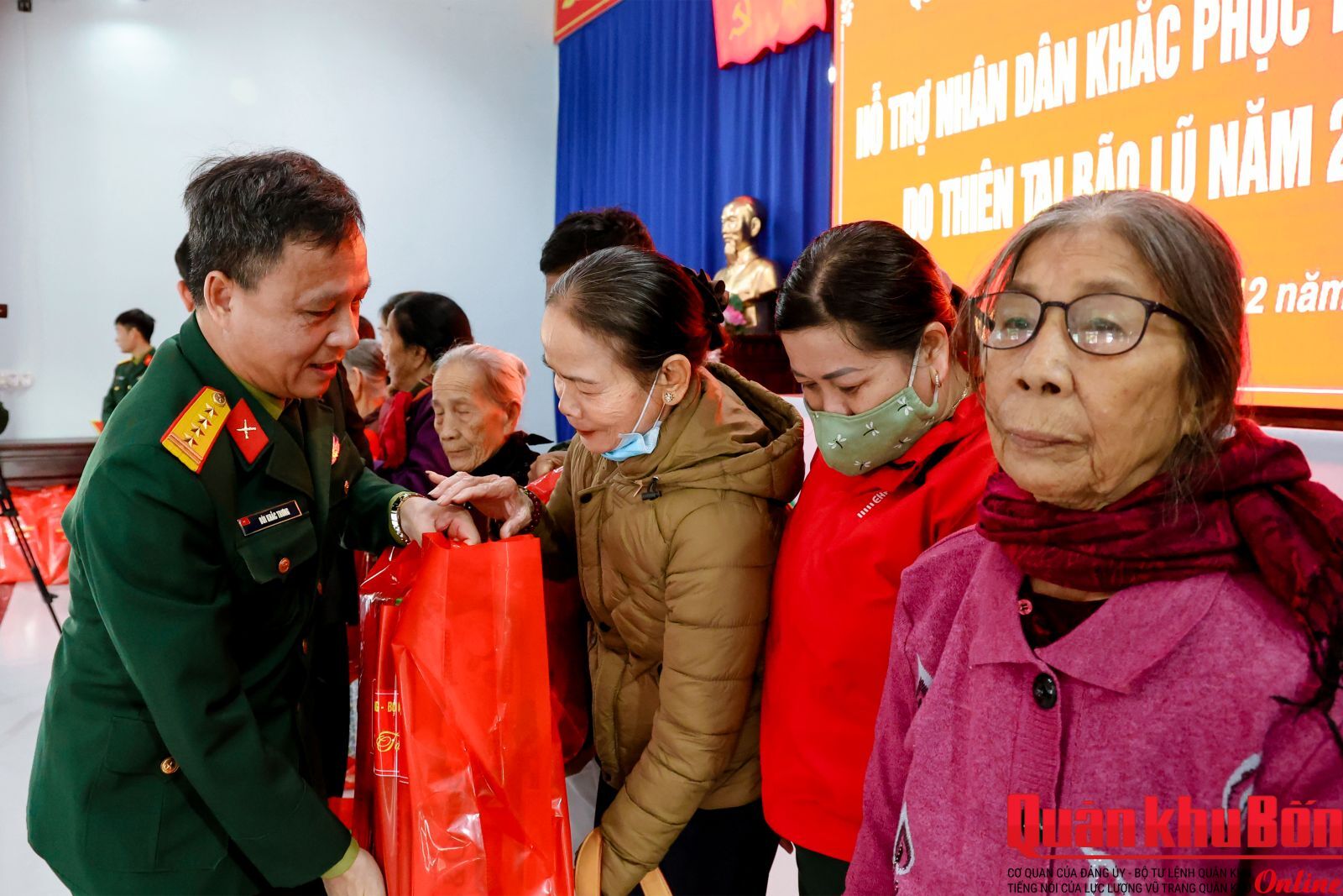 Thực hiện sự chỉ đạo và ủy quyền của QUTƯ - Bộ Quốc phòng, đoàn công tác do đại diện lãnh đạo Cục Chính sách, Cục Tuyên huấn, (Tổng cục Chính trị Quân đội nhân dân Việt Nam) và Tổng công ty Sông Thu (Tổng cục Công nghiệp quốc phòng) đã trực tiếp đến với những địa bàn trọng yếu, chịu ảnh hưởng nặng nề của thiên tai tại Thừa Thiên Huế. Trong đợt lũ lịch sử vừa qua, TP Huế và các huyện lân cận đã phải gánh chịu những tổn thất nặng nề về tài sản và hạ tầng. Thấu hiểu những khó khăn đó, đoàn công tác đã trực tiếp đến thăm hỏi, động viên bà con tại các xã Chân Mây - Lăng Cô, xã Phú Lộc và phường Thủy Xuân.