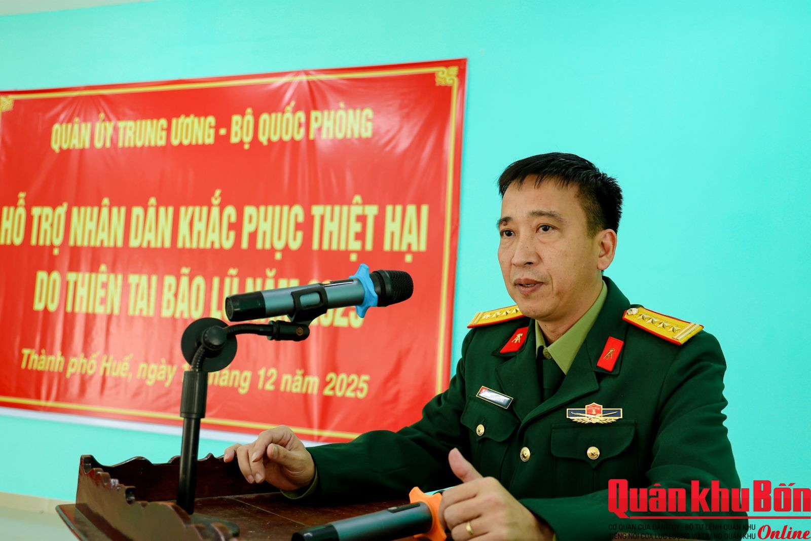 Thay mặt đoàn công tác, Đại tá Trịnh Minh Hải, Phó Tổng công ty Sông Thu (Tổng cục Công nghiệp quốc phòng) đã ân cần thăm hỏi, gửi lời chia buồn sâu sắc trước những mất mát mà Nhân dân Thành phố Huế phải gánh chịu. Đồng chí nhấn mạnh: “Trong bất kỳ hoàn cảnh khó khăn nào, đặc biệt là khi thiên tai, bão lũ, Quân đội luôn là lực lượng xung kích, sẵn sàng sát cánh cùng Nhân dân. Chúng tôi hy vọng sự hỗ trợ này sẽ tiếp thêm động lực để bà con sớm vượt qua nghịch cảnh, khôi phục sản xuất và ổn định cuộc sống”.