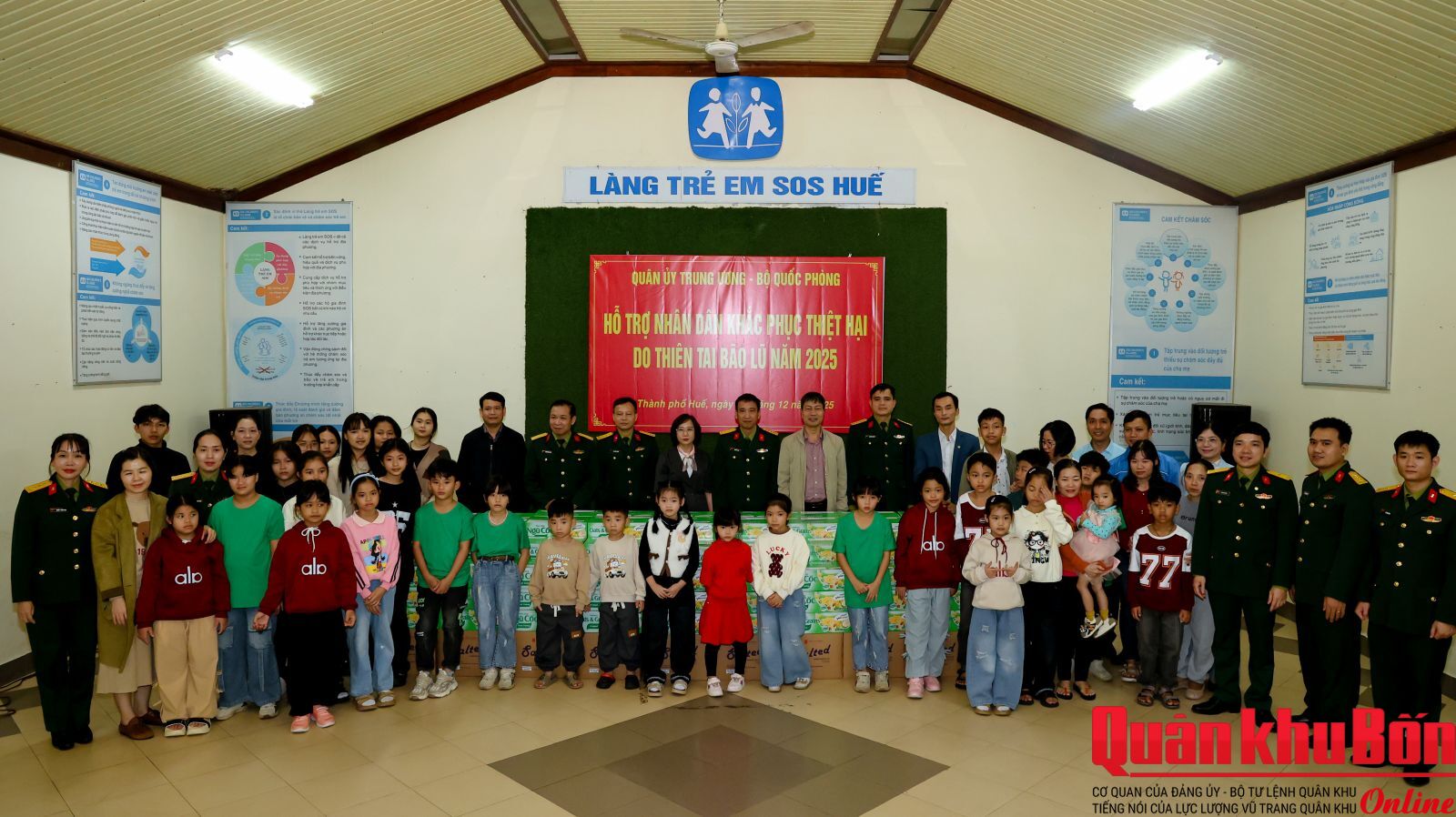 Đoàn công tác đến thăm và trao quà cho các em nhỏ tại Làng trẻ em SOS Huế (phường Thủy Xuân). Tại đây, các thành viên trong đoàn đã động viên các em nỗ lực học tập, vượt qua khó khăn sau bão lũ để trở thành những công dân có ích cho xã hội.