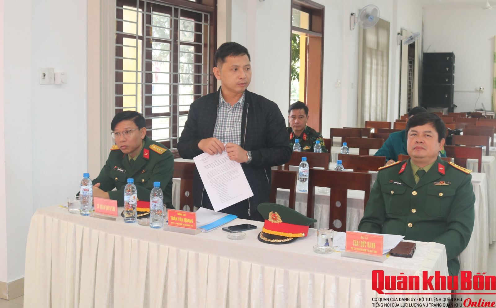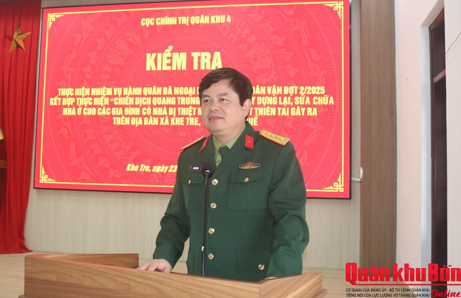 Sáng ngày 23/12, đoàn công tác Cục Chính trị Quân khu 4 do Đại tá Thái Đức Hạnh, Phó Chủ nhiệm Chính trị Quân khu làm trưởng đoàn đã thăm, kiểm tra và động viên các lực lượng đang thực hiện nhiệm vụ hành quân dã ngoại làm công tác dân vận kết hợp “Chiến dịch Quang Trung” tại hai xã Lộc An và Khe Tre, thành phố Huế.