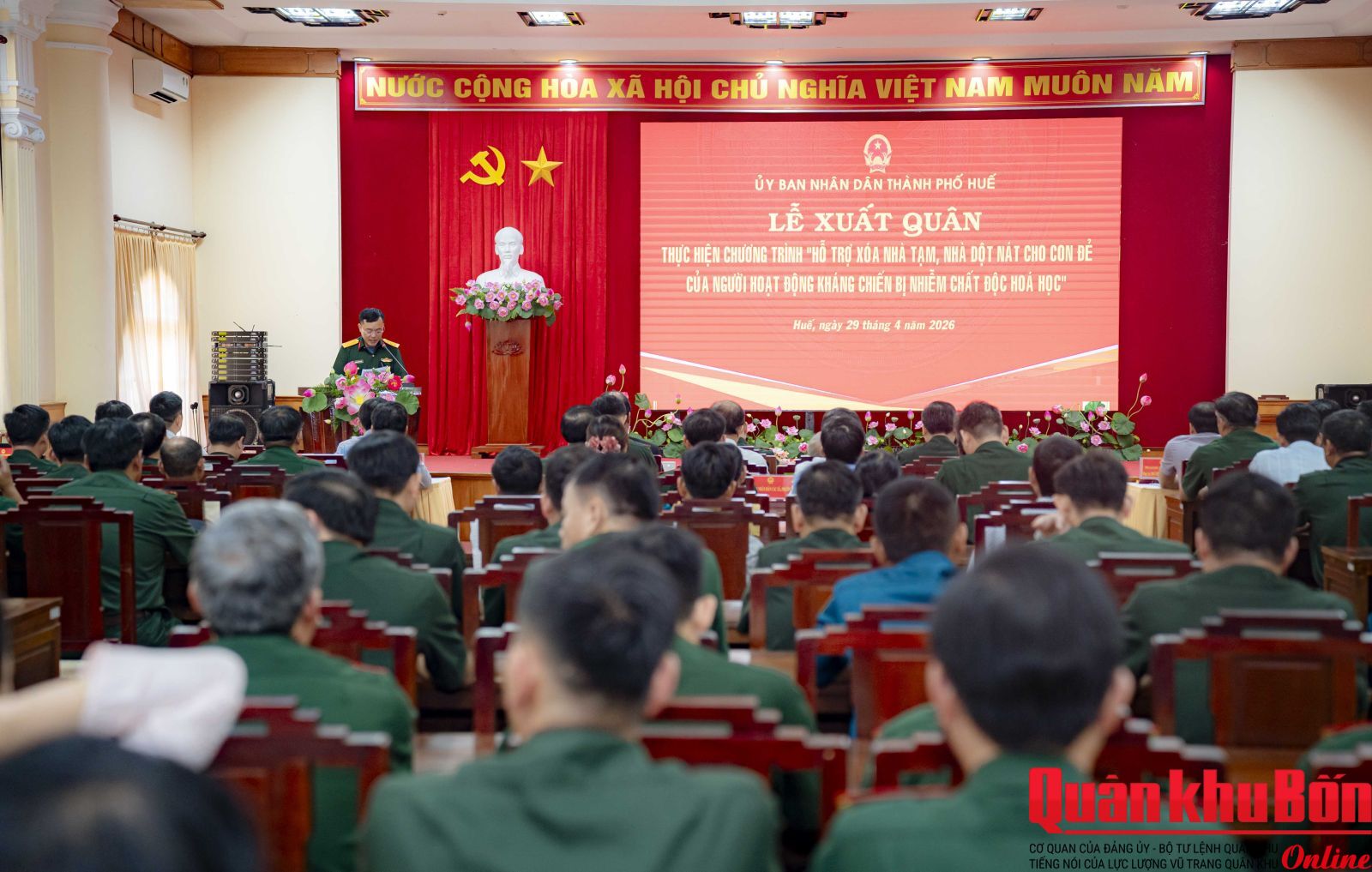 Sáng 29/4/2026, UBND thành phố Huế tổ chức Lễ xuất quân thực hiện Chương trình “Hỗ trợ xóa nhà tạm, nhà dột nát cho con đẻ của người hoạt động kháng chiến bị nhiễm chất độc hóa học” trên địa bàn thành phố. Phó Chủ tịch UBND thành phố Huế Nguyễn Văn Mạnh chủ trì lễ phát động.