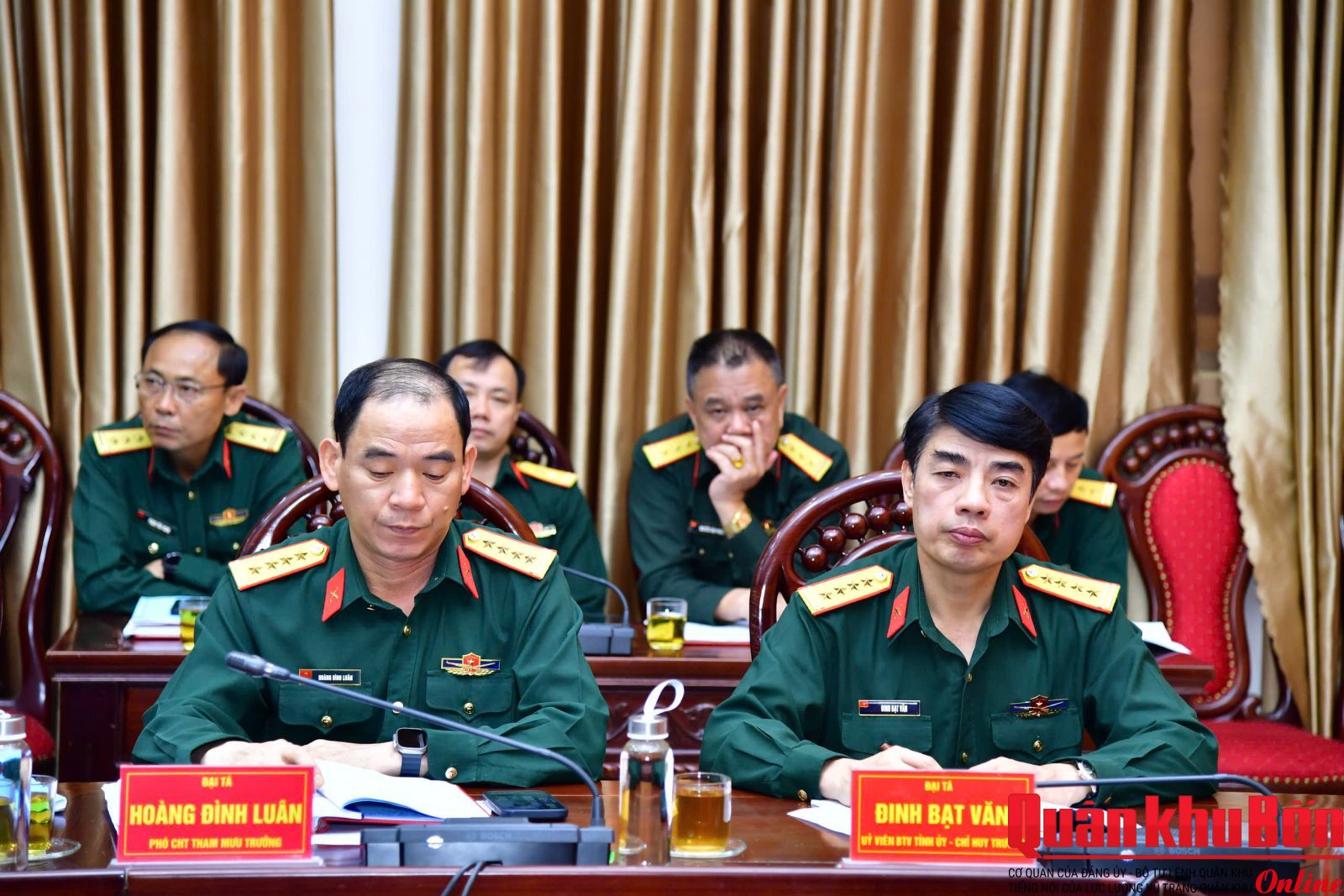 Tại buổi làm việc, Bộ CHQS tỉnh Nghệ An và chỉ huy các cơ quan, đơn vị báo cáo kết quả thực hiện nhiệm vụ quân sự, quốc phòng; việc triển khai các chủ trương, chính sách, pháp luật của Nhà nước, quy định của Bộ Quốc phòng; tình hình tổ chức, biên chế, chức năng, nhiệm vụ; kết quả công tác quân sự, công tác Đảng, công tác chính trị, công tác hậu cần, kỹ thuật trong thời gian từ ngày 01/01/2024 đến tháng 3/2026.