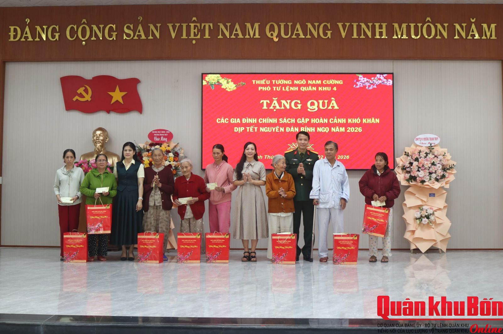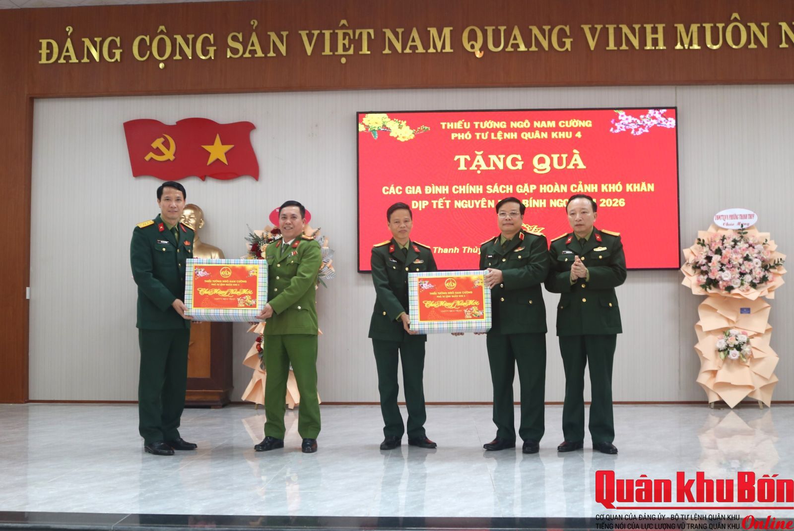 Phát biểu chỉ đạo, Thiếu tướng Ngô Nam Cường yêu cầu đơn vị tiếp tục thực hiện tốt các hoạt động "Đền ơn đáp nghĩa", chương trình "Xuân Biên cương, hải đảo - Tết thắm tình quân dân" và chuẩn bị mọi mặt cho lễ ra quân huấn luyện cũng như kỷ niệm 95 năm ngày thành lập Đoàn TNCS Hồ Chí Minh. Nhân dịp năm mới, đồng chí Phó Tư lệnh Quân khu đã tặng quà và chúc cán bộ, chiến sĩ đơn vị đón Tết Xuân Bính Ngọ 2026 vui tươi, an toàn và hoàn thành xuất sắc mọi nhiệm vụ được giao.