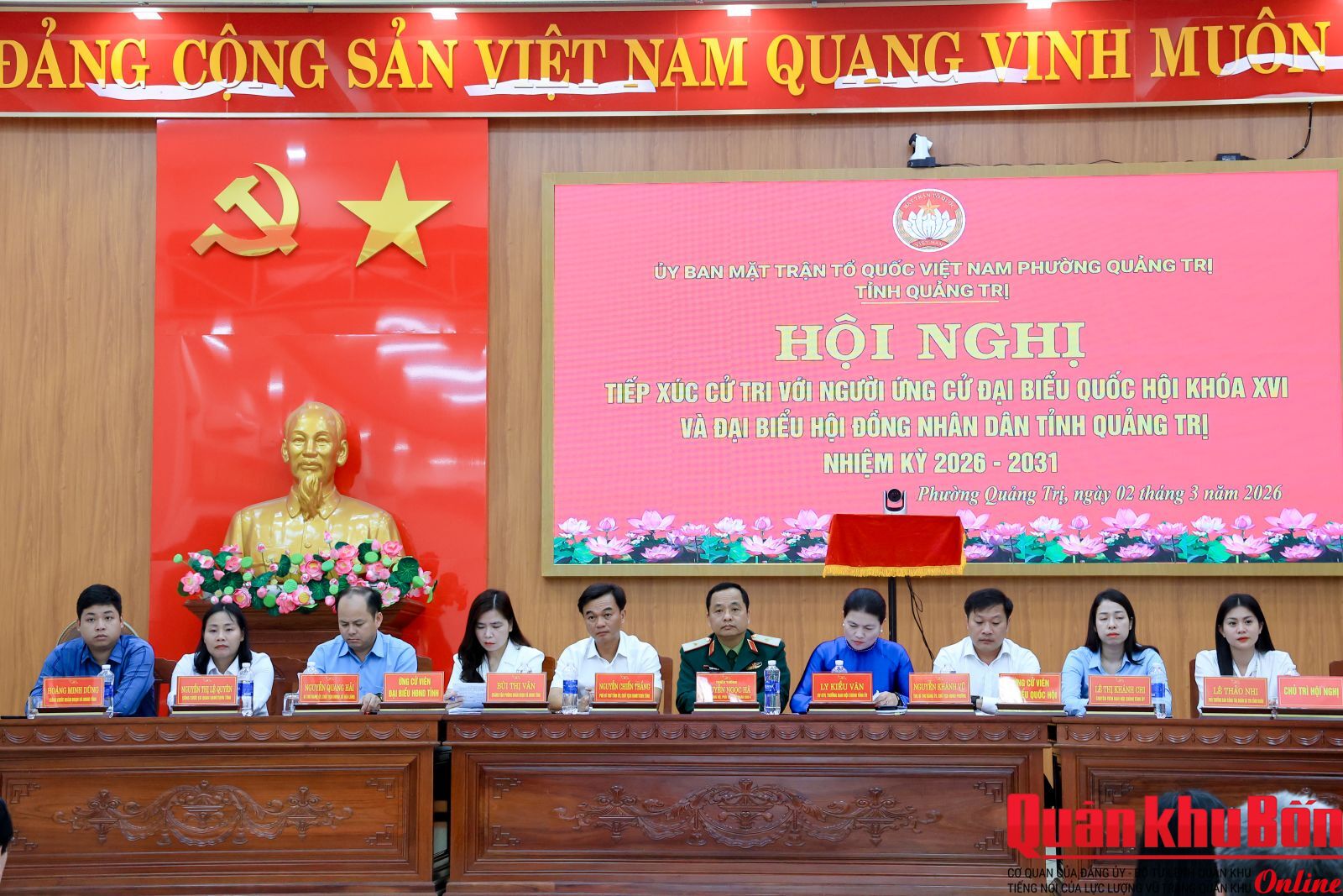 Thực hiện quy trình bầu cử Đại biểu Quốc hội khóa XVI và bầu cử đại biểu Hội đồng nhân dân các cấp nhiệm kỳ 2026-2031, ngày 02/3/2026, Thiếu tướng Nguyễn Ngọc Hà, Phó Tư lệnh Quân khu 4, người ứng cử đại biểu Quốc hội khóa XVI đã tiếp xúc cử tri phường Quảng Trị (thuộc đơn vị bầu cử số 02) tỉnh Quảng Trị.