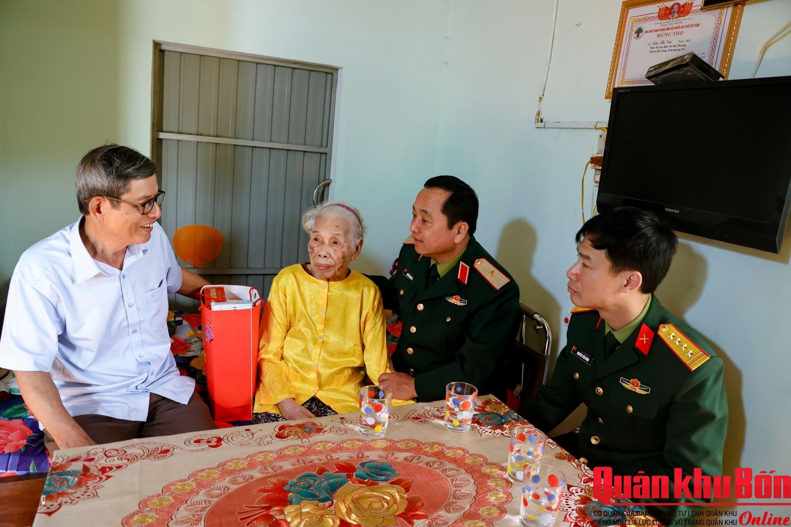 Cùng với đó, đoàn công tác đã đến thăm, tặng quà các Mẹ Việt Nam Anh hùng và gia đình chính sách trên địa bàn. Những cái nắm tay ấm áp, những món quà chứa đựng tình đồng chí, nghĩa đồng bào đã tô thắm thêm truyền thống “Uống nước nhớ nguồn” của dân tộc. Đây không chỉ là hoạt động tri ân, mà còn là sự khẳng định: Với người lính Bộ đội Cụ Hồ, chăm lo cho hậu phương quân đội và người có công luôn là ưu tiên hàng đầu, là sợi chỉ đỏ xuyên suốt trong mọi hành trình công tác.