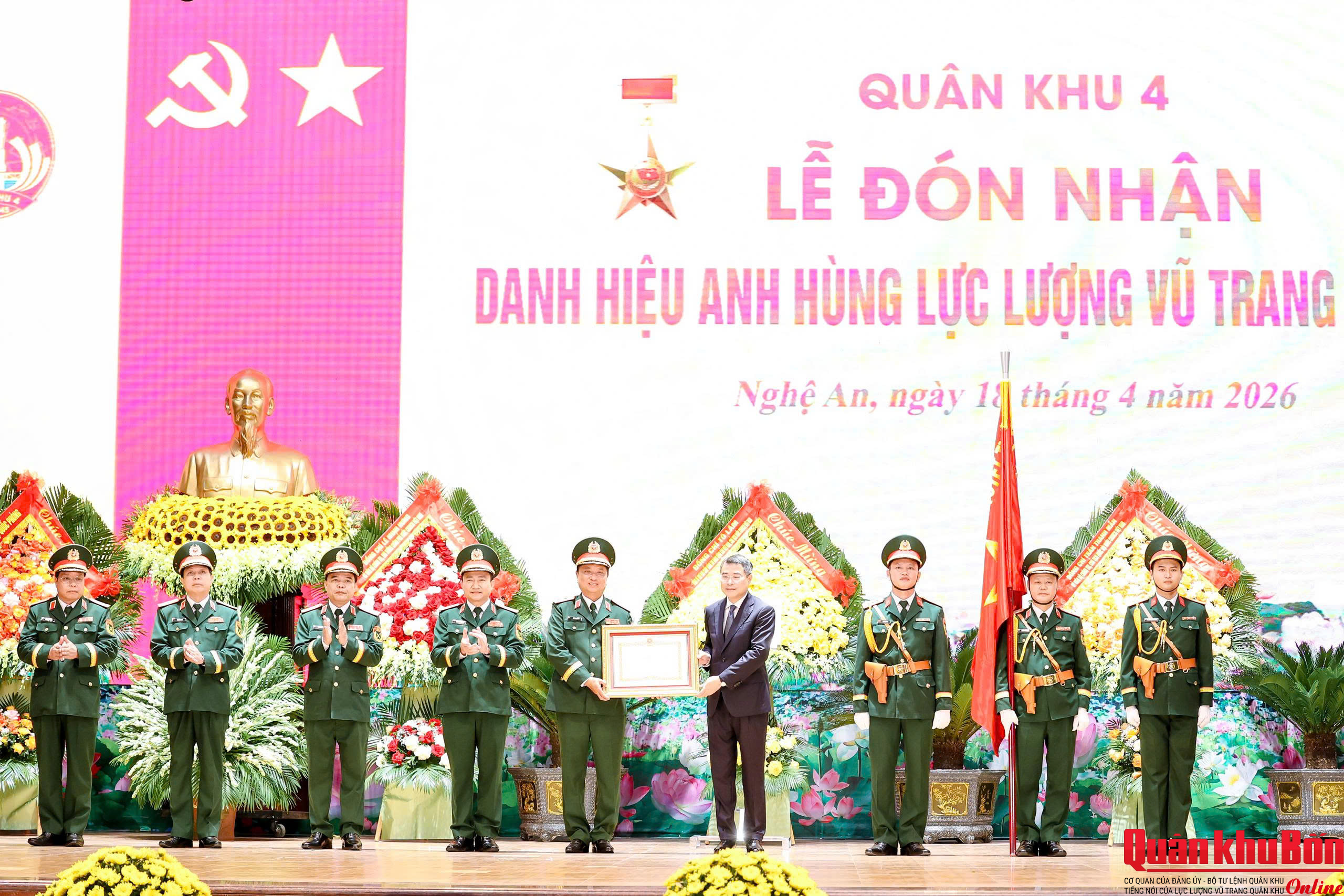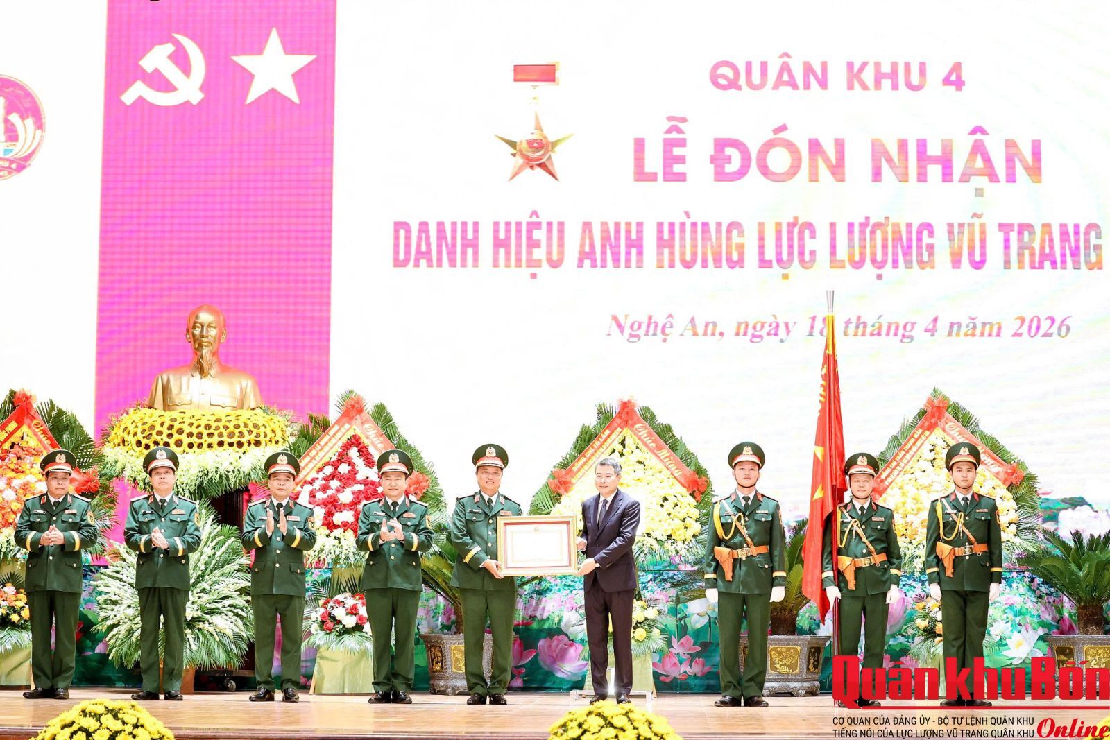 Ngày 18/4/2026, Đảng ủy, Bộ Tư lệnh Quân khu 4 long trọng tổ chức Lễ đón nhận danh hiệu Anh hùng lực lượng vũ trang (LLVT) Nhân dân. Đồng chí Lê Minh Hưng, Ủy viên Bộ Chính trị, Thủ tướng Chính phủ nước Cộng hòa xã hội chủ nghĩa Việt Nam dự, phát biểu và trao tặng danh hiệu Anh hùng LLVT cho Quân khu 4.