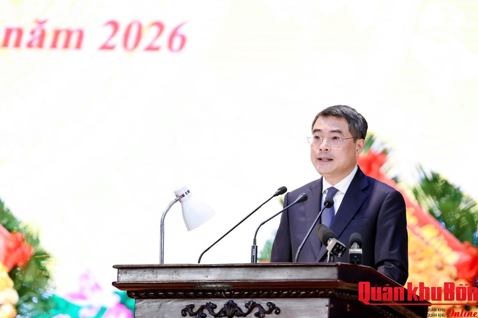 Phát biểu tại buổi Lễ, đồng chí Lê Minh Hưng, Ủy viên Bộ Chính trị, Thủ tướng Chính phủ nhiệt liệt chúc mừng, biểu dương những chiến công, thành tích đặc biệt xuất sắc của các thế hệ cán bộ, chiến sĩ LLVT Quân khu 4 trong hơn 80 năm qua. Đồng chí khẳng định, phần thưởng cao quý mà LLVT Quân khu 4 đón nhận hôm nay là niềm vui, niềm tự hào của cán bộ, chiến sĩ Quân khu, của Quân đội Nhân dân Việt Nam anh hùng, đồng thời là sự ghi nhận của Đảng, Nhà nước và Nhân dân đối với một lực lượng đã có nhiều cống hiến đặc biệt xuất sắc trong sự nghiệp đấu tranh giải phóng dân tộc, bảo vệ Tổ quốc và xây dựng đất nước.