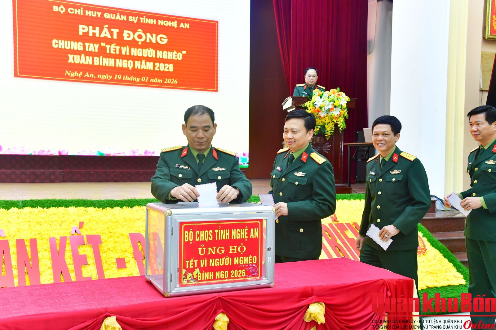 Hưởng ứng Thư kêu gọi của Bí thư Tỉnh ủy Nghệ An về việc ủng hộ, giúp đỡ người nghèo, người có hoàn cảnh khó khăn, người yếu thế đón Tết Bính Ngọ, sáng 19/1/2026, Bộ Chỉ huy Quân sự (CHQS) tỉnh Nghệ An tổ chức Lễ phát động ủng hộ “Tết vì người nghèo - Xuân Bính Ngọ năm 2026”.