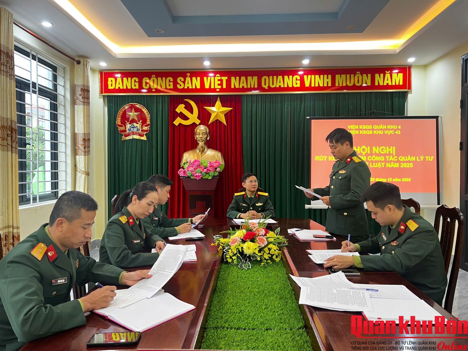 Chi bộ Viện Kiểm sát Quân sự Khu vực 43 (Viện Kiểm sát Quân sự Quân khu 4) vừa tổ chức Hội nghị ra nghị quyết lãnh đạo thực hiện nhiệm vụ năm 2026, kết hợp Hội nghị rút kinh nghiệm công tác quản lý tư tưởng, kỷ luật năm 2025.