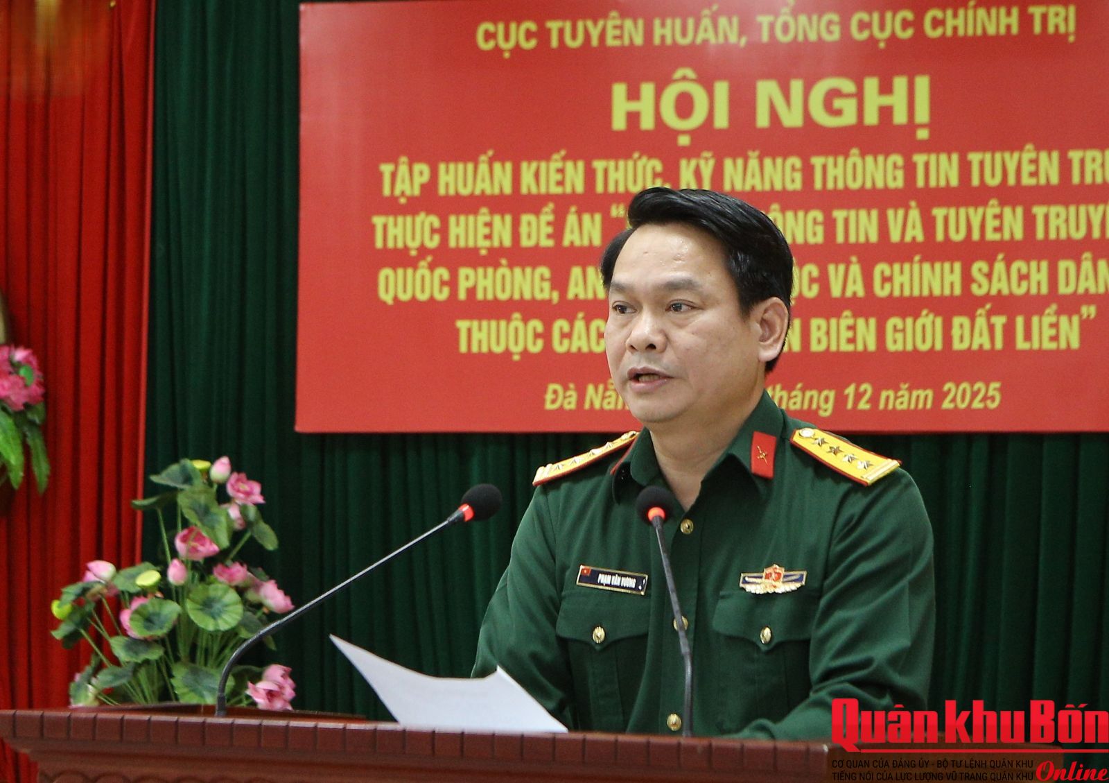 Sáng 11/12/2025, tại Đà Nẵng, Cục Tuyên huấn, Tổng cục Chính trị Quân đội nhân dân Việt Nam tổ chức khai mạc tập huấn kiến thức, kỹ năng thông tin tuyên truyền thực hiện Đề án Hỗ trợ thông tin và tuyên truyền về quốc phòng, an ninh, dân tộc và chính sách dân tộc thuộc các tỉnh địa bàn biên giới đất liền (Đề án 1219).