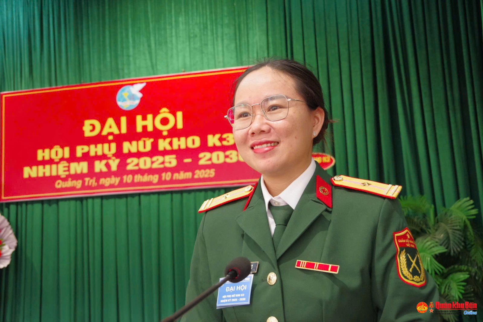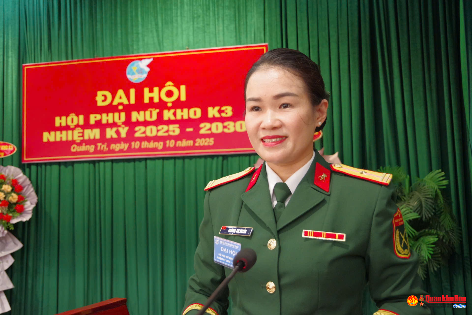 Ngày 10/10/2025, Hội Phụ nữ cơ sở Kho K3 (Cục Hậu cần - Kỹ thuật, Quân khu 4) tổ chức Đại hội nhiệm kỳ 2025 - 2030. Tham dự và chỉ đạo Đại hội có Thượng tá Đoàn Minh Ngọc, Bí thư Đảng ủy, Chính trị viên Kho; cùng dự có các đồng chí trong Thường vụ Đảng ủy, chỉ huy Kho, đại diện chỉ huy cơ quan, đơn vị, tổ chức quần chúng và 13 hội viên Hội Phụ nữ cơ sở.