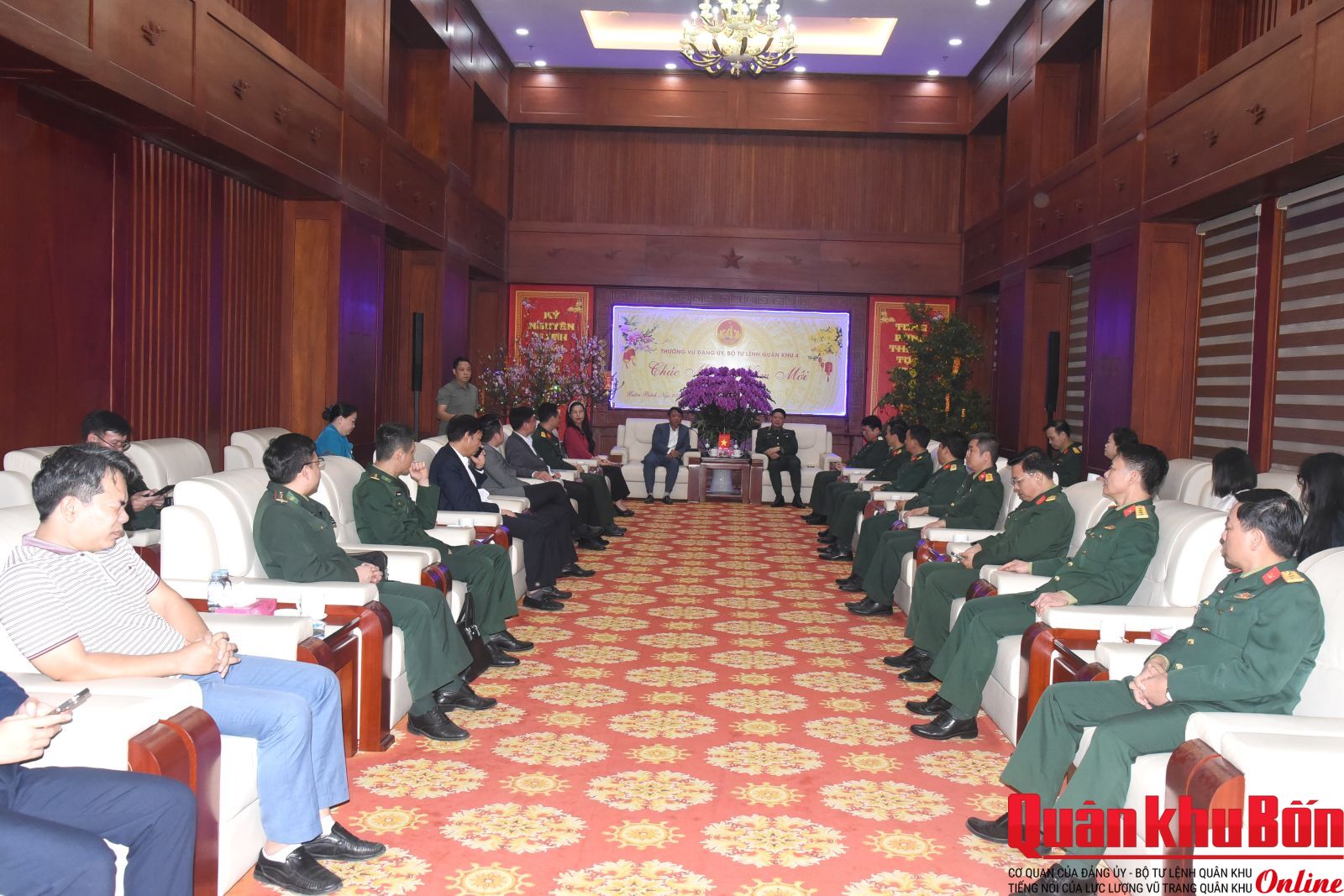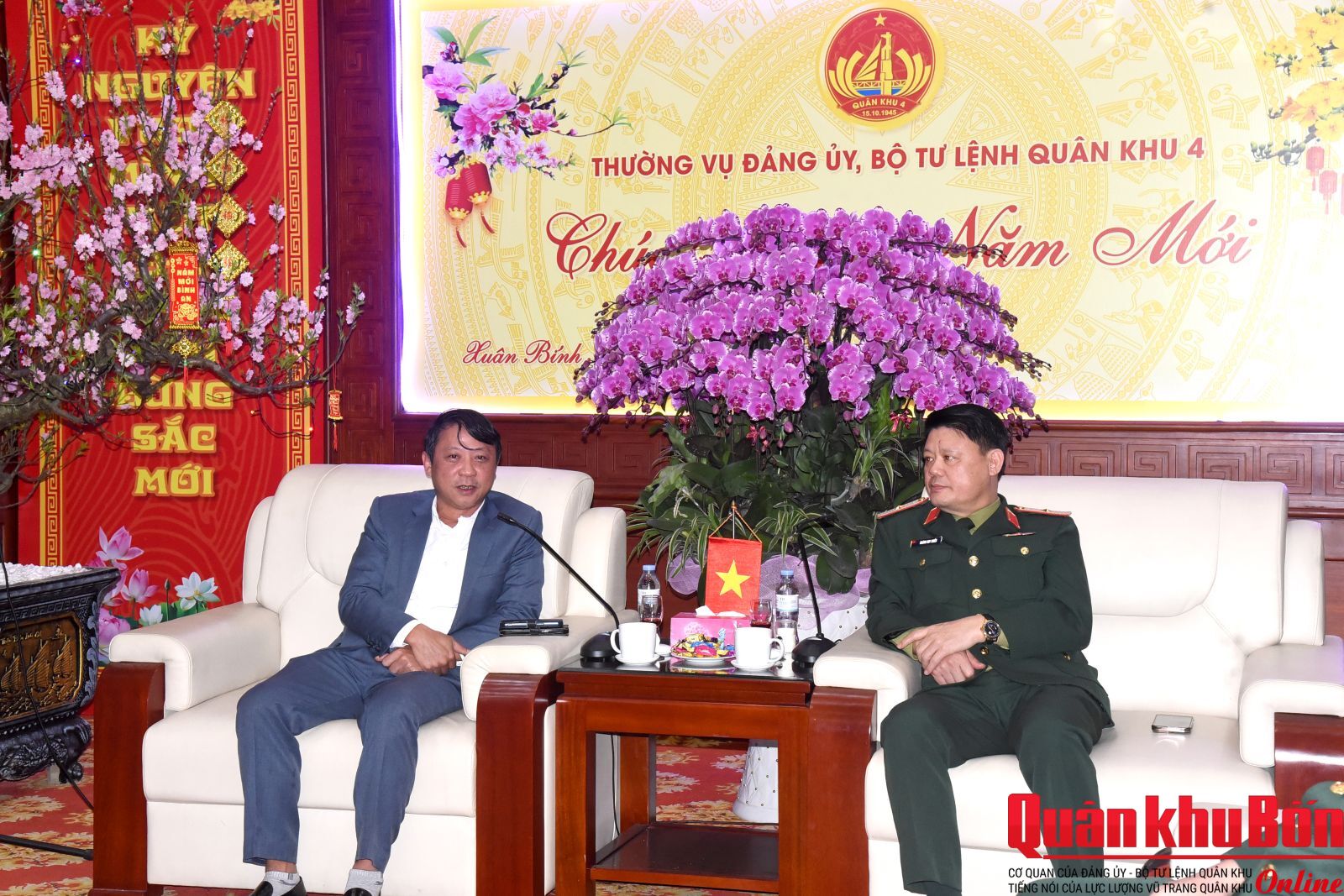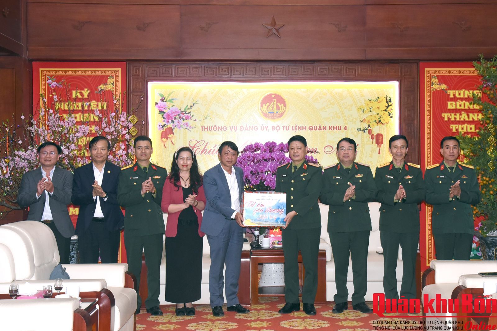 Chiều ngày 06/02/2026, đoàn công tác Chương trình “Tết ấm yêu thương” năm 2026 do đồng chí PGS, TS Nguyễn Ngọc Hà, Phó Tổng Biên tập Tạp chí Cộng sản làm trưởng đoàn đã đến thăm và chúc Tết Bộ Tư lệnh Quân khu 4. Tham gia đoàn công tác có đại diện các cơ quan thuộc Tạp chí Cộng sản, Bộ Tư lệnh Bộ đội Biên phòng, Học viện Khoa học Quân sự cùng lãnh đạo Ngân hàng Nông nghiệp và Phát triển nông thôn chi nhánh Nghệ An, Hà Tĩnh. Thiếu tướng Hoàng Duy Chiến, Phó Tư lệnh Quân khu 4 chủ trì buổi tiếp đoàn. Cùng dự có Thiếu tướng Phan Văn Sỹ, Phó Chủ nhiệm Chính trị Quân khu và đại diện các cơ quan chức năng thuộc Quân khu.