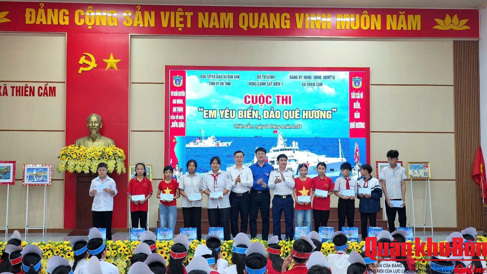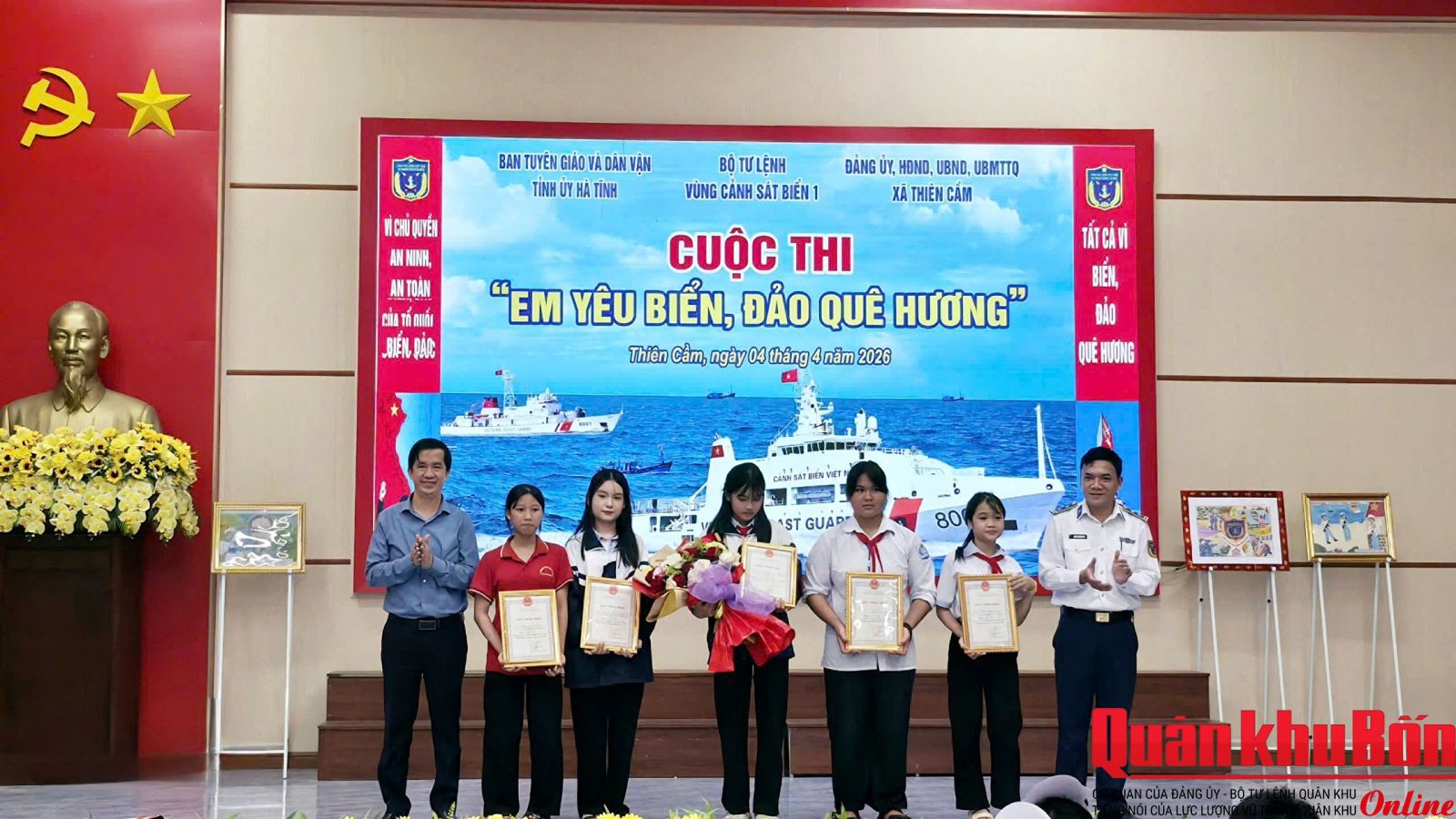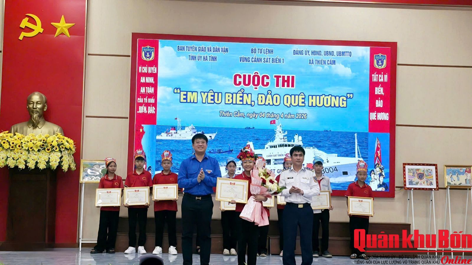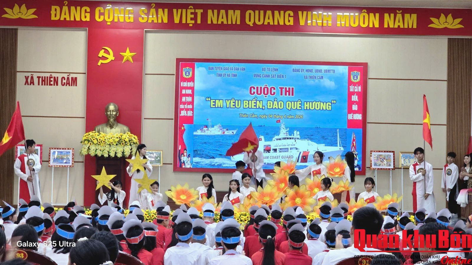 Ngày 04/4/2026, tại Hội trường Ủy ban nhân dân xã Thiên Cầm, tỉnh Hà Tĩnh, Bộ Tư lệnh Vùng Cảnh sát biển 1 phối hợp với Ban Tuyên giáo và Dân vận Tỉnh ủy Hà Tĩnh, các sở, ban, ngành, lực lượng vũ trang tỉnh, cấp ủy, chính quyền, các đoàn thể địa phương xã Thiên Cầm và Trường THCS Thiên Cầm, Trường THCS Cẩm Nhượng tổ chức Cuộc thi “Em yêu biển, đảo quê hương”, thu hút đông đảo học sinh tham gia, tạo không khí sôi nổi, hào hứng và giàu ý nghĩa giáo dục.