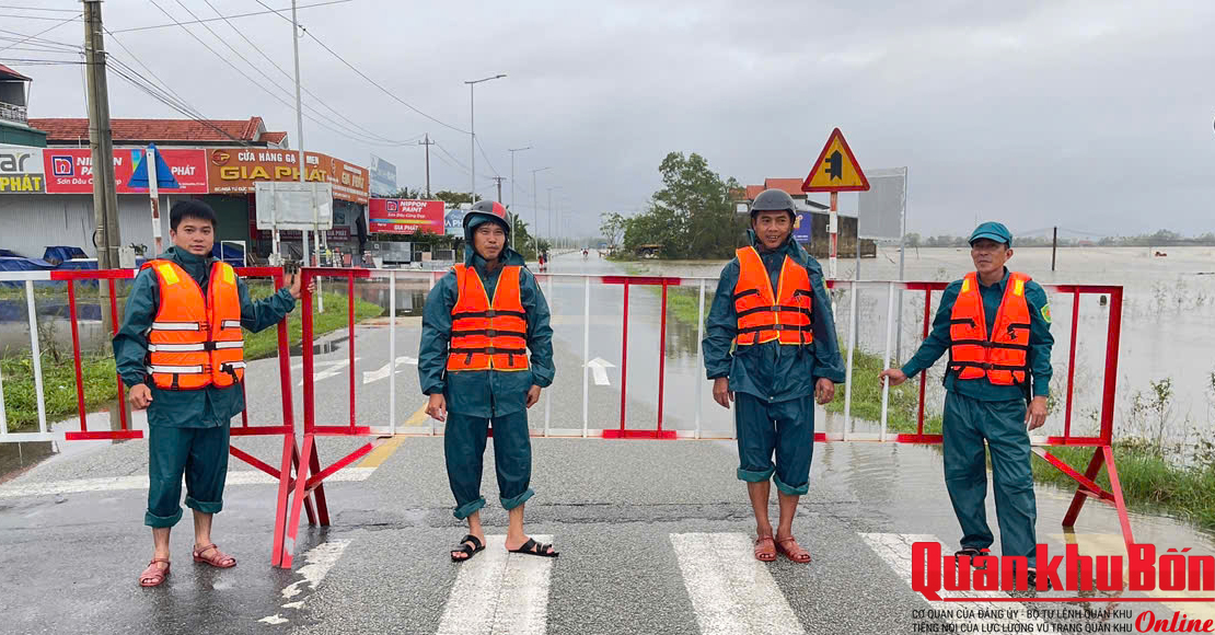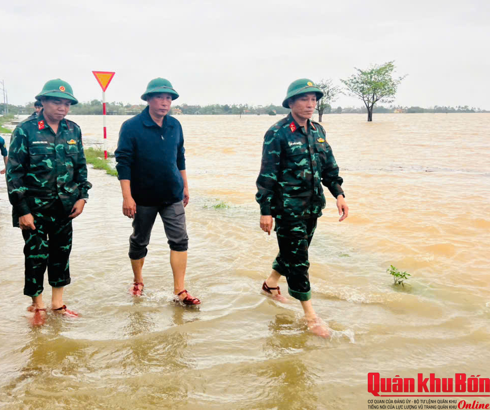 Chiều tối 17/11, Đoàn công tác Bộ CHQS thành phố Huế do Thượng tá Hồ Đắc Quốc, Phó Chỉ huy trưởng Bộ CHQS thành phố, làm trưởng đoàn đã kiểm tra, chỉ đạo công tác ứng phó tại xã Quảng Điền. Tại các điểm kiểm tra, đồng chí Phó Chỉ huy trưởng Bộ CHQS thành phố yêu cầu Ban CHQS các xã, phường rà soát ngay các khu vực có nguy cơ ngập sâu, chia cắt để di dời bà con trong đêm đến nơi an toàn; đồng thời chuẩn bị lực lượng, phương tiện, sẵn sàng ứng cứu khi có tình huống xảy ra.