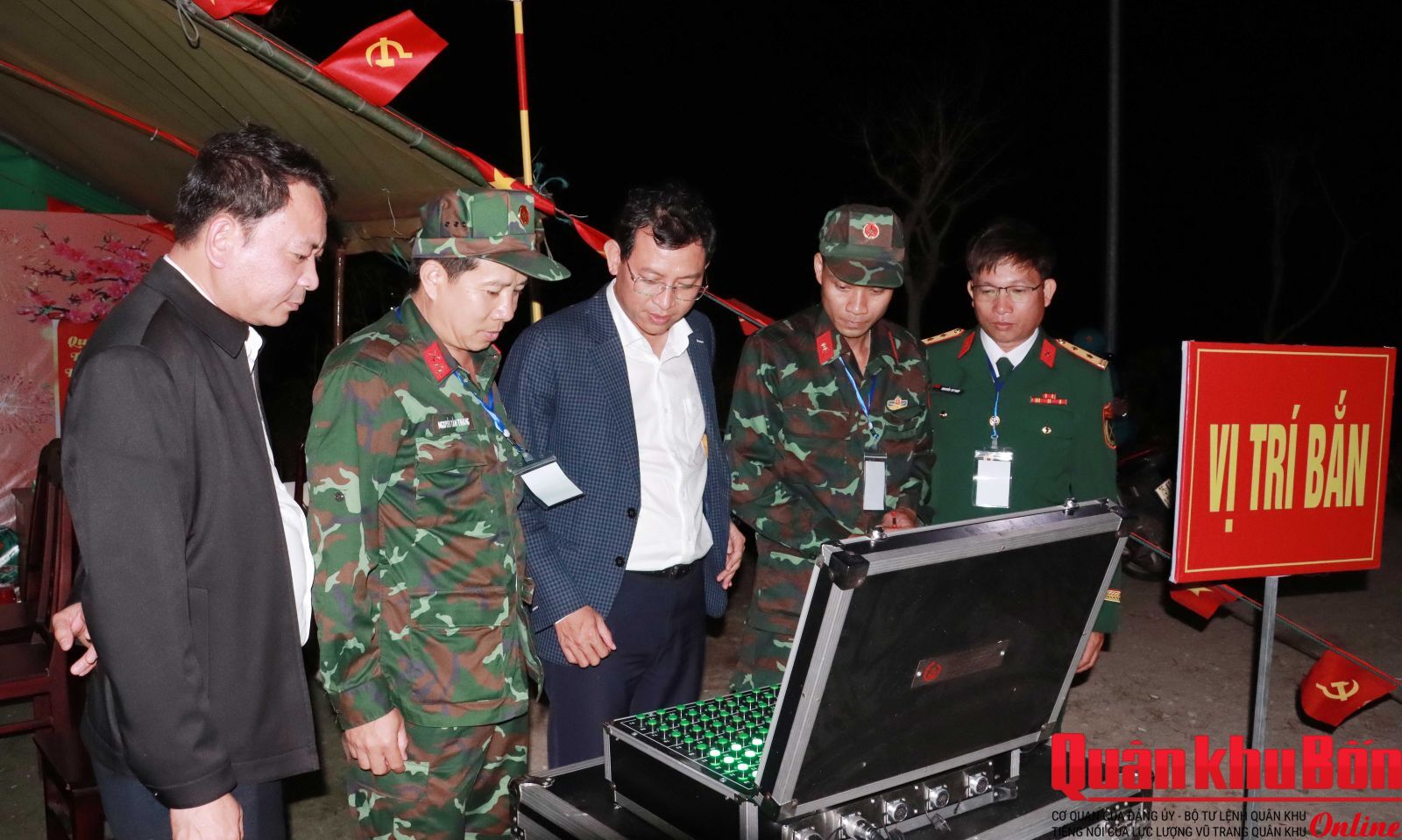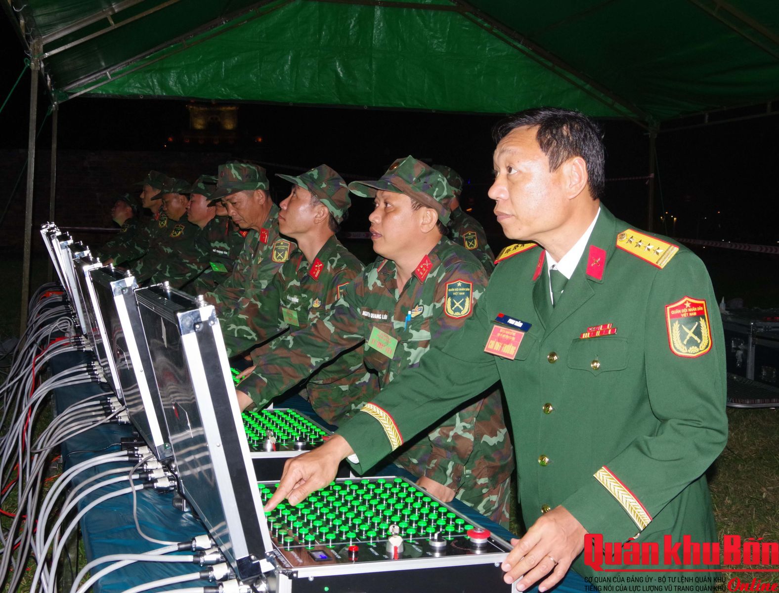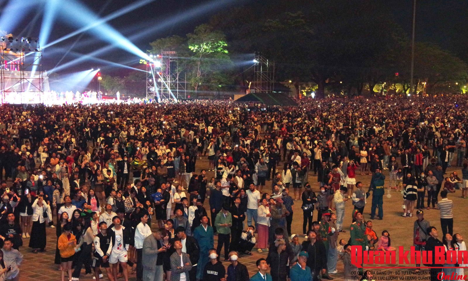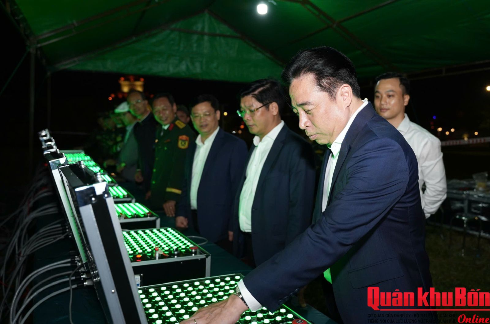Tại điểm bắn pháo hoa Kỳ Đài - Ngọ Môn, trong không khí hân hoan chào đón năm mới, trước thời khắc giao thừa, Chủ tịch UBND thành phố Nguyễn Khắc Toàn cùng lãnh đạo Thành ủy, UBND thành phố đã thực hiện nghi thức khai hỏa 9 quả pháo hoa đầu tiên, gửi gắm niềm tin và kỳ vọng về một năm mới thắng lợi, thành công.