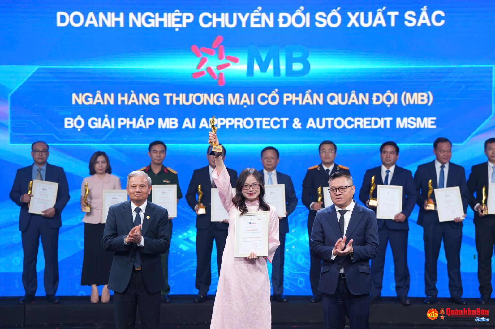 Nối tiếp những năm trước, năm nay, Ngân hàng TMCP Quân đội (MB) tiếp tục nhận giải thưởng “Doanh nghiệp, đơn vị sự nghiệp chuyển đổi số xuất sắc” tại Giải thưởng Chuyển đổi số Việt Nam – Vietnam Digital Awards 2025 nhờ bộ giải pháp công nghệ toàn diện ứng dụng trí tuệ nhân tạo và tự động hóa trong phục vụ khách hàng.