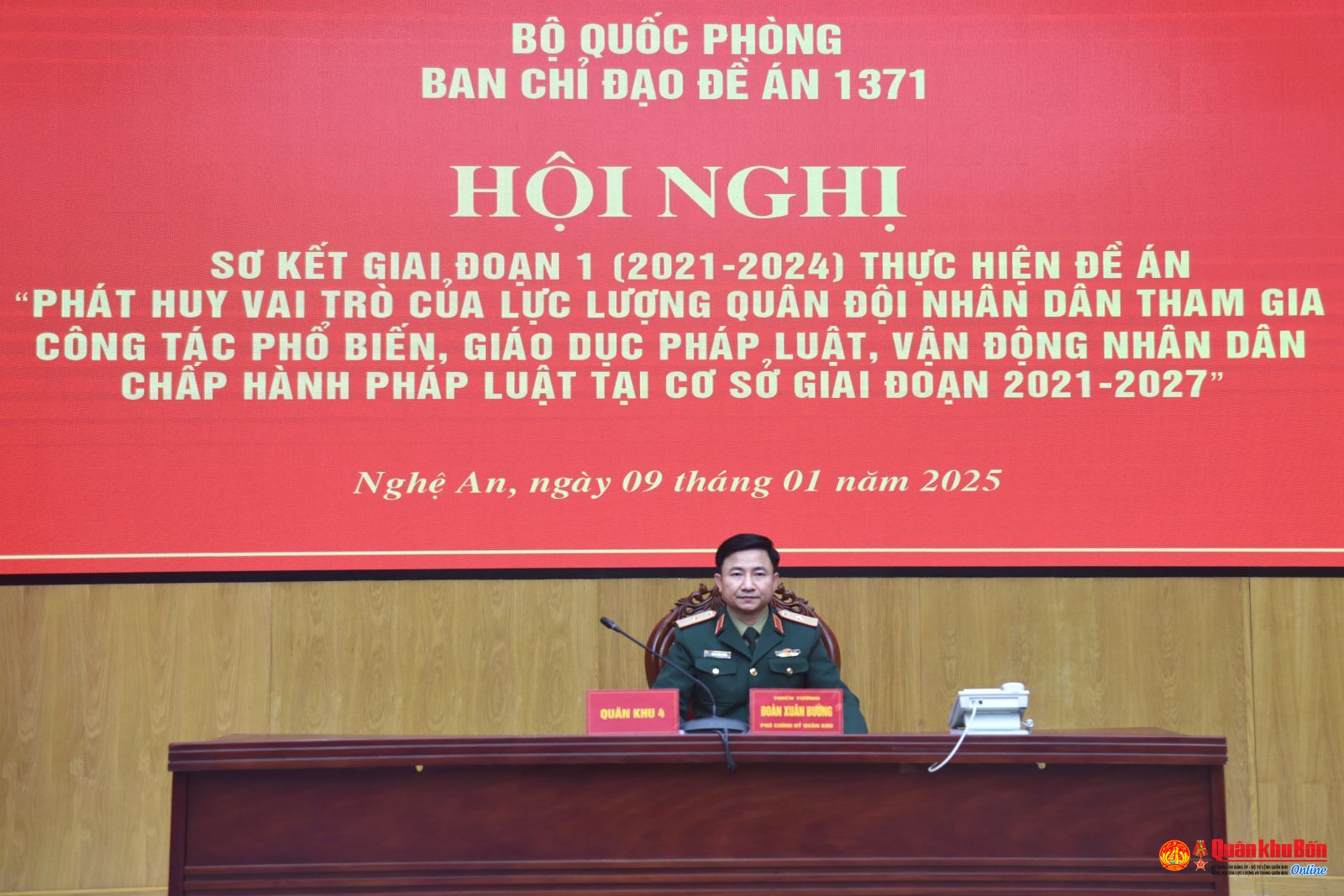 Sáng ngày 09/01/2025, Ban Chỉ đạo Đề án 1371, Bộ Quốc phòng tổ chức Hội nghị Sơ kết giai đoạn 1 (2021 - 2024) thực hiện Đề án “Phát huy vai trò của lực lượng Quân đội nhân dân tham gia công tác phổ biến, giáo dục pháp luật, vận động nhân dân chấp hành pháp luật tại cơ sở giai đoạn 2021 - 2027”. Thượng tướng Võ Minh Lương, Ủy viên Trung ương Đảng, Ủy viên Thường vụ Quân ủy Trung ương, Thứ trưởng Bộ Quốc phòng, Trưởng Ban Chỉ đạo Đề án 1371 Bộ Quốc phòng chủ trì Hội nghị. Hội nghị được tổ chức bằng hình thức trực tuyến tại 131 điểm cầu trong toàn quân.