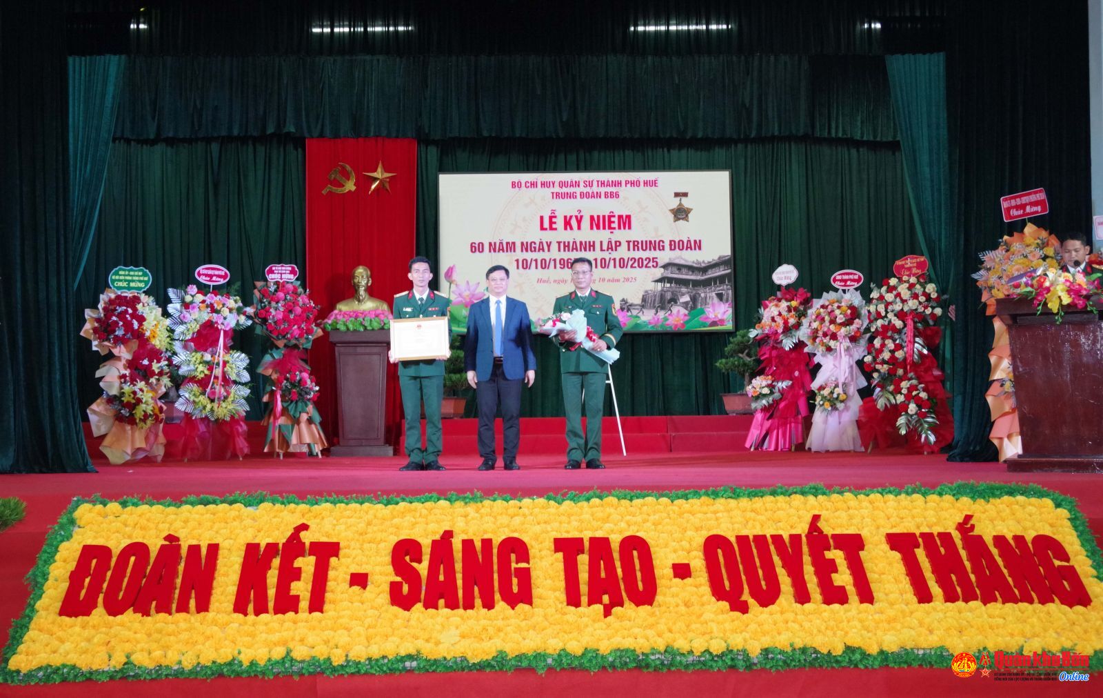 Để ghi nhận những thành tích của Trung đoàn, dịp này, UBND thành phố Huế đã trao tặng Bằng khen cho đơn vị vì đã có thành tích xuất sắc trong 60 năm xây dựng, chiến đấu và trưởng thành.