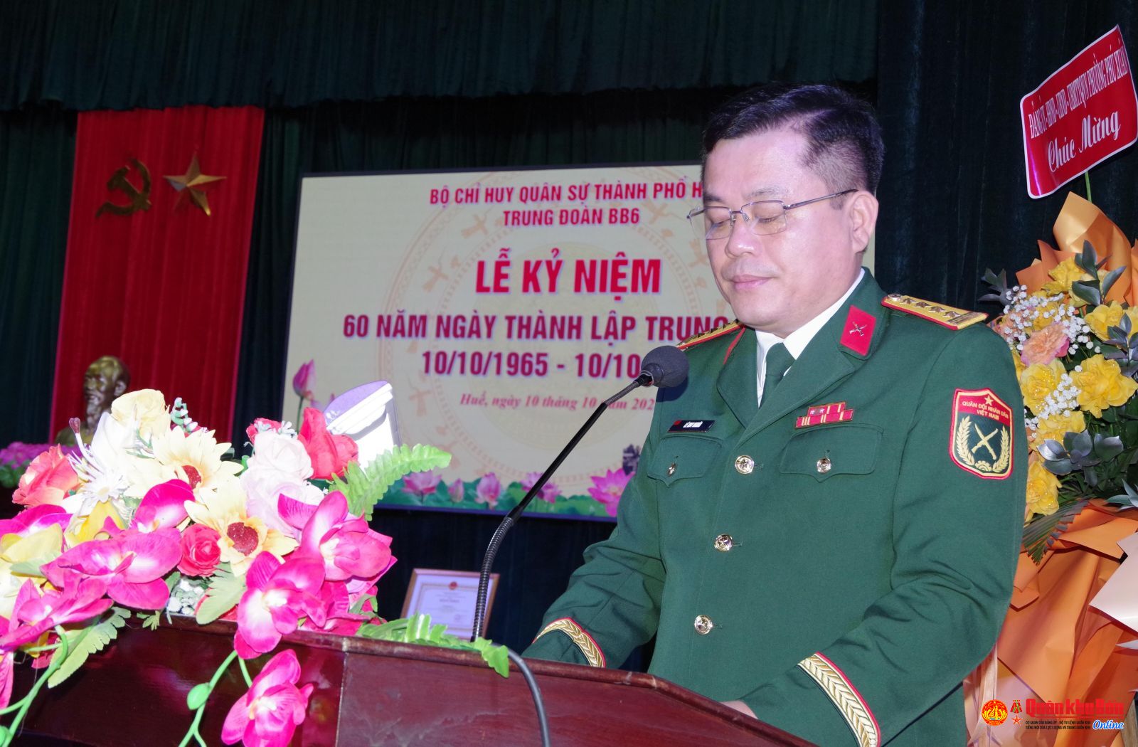 Ngày 10/10/2025, Trung đoàn Bộ binh 6, Bộ Chỉ huy Quân sự (CHQS) thành phố Huế (Quân khu 4) long trọng tổ chức Lễ kỷ niệm 60 năm ngày thành lập (10/10/1965 – 10/10/2025).
