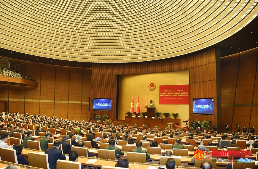 | Quang cảnh Hội nghị toàn quốc về đột phá phát triển khoa học, công nghệ, đổi mới sáng tạo và chuyển đổi số quốc gia. |