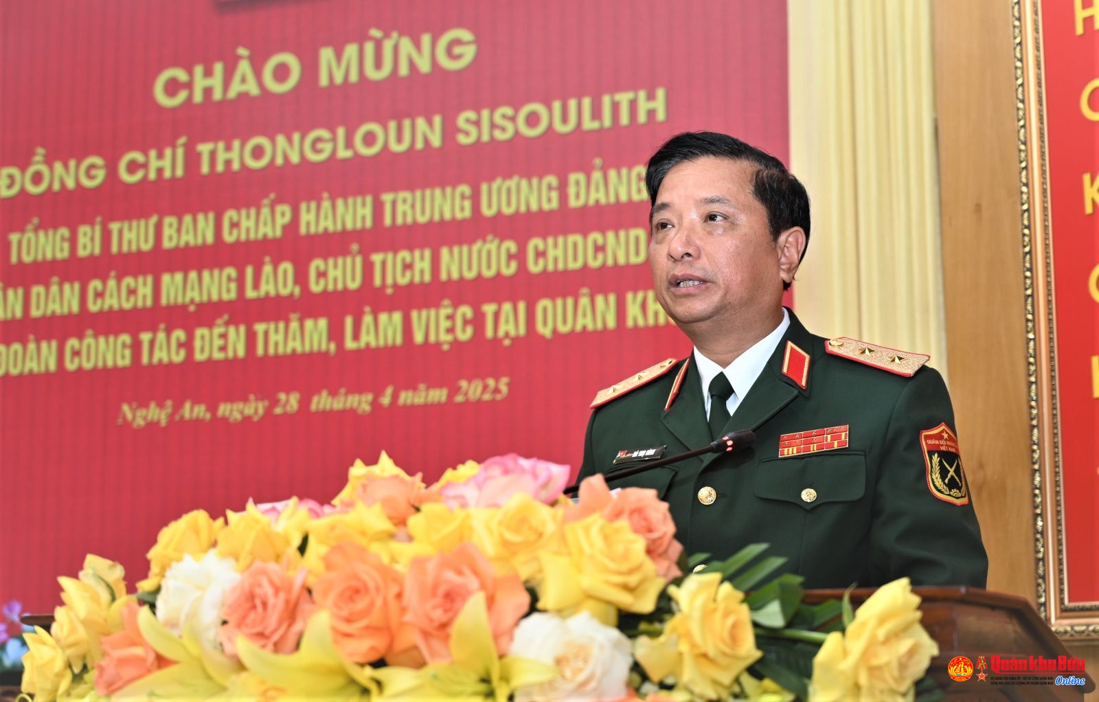 Sáng ngày 28/4/2025, đồng chí Thoong Lun – Sỉ Su Lít, Tổng Bí thư Ban Chấp hành Trung ương Đảng Nhân dân Cách mạng Lào – Chủ tịch nước Cộng hòa dân chủ Nhân dân (CHDCND) Lào đã đến thăm Bộ Tư lệnh Quân khu 4. Cùng đi với Tổng Bí thư, Chủ tịch nước CHDCND Lào có đồng chí Sả Lởm Xay – Kôm Mạ Xít, Ủy viên Bộ Chính trị, Phó Thủ tướng Chính phủ nước CHDCND Lào; đồng chí Thoong Xa Lít – Măng Nỏ Mệch; Bí thư Trung ương Đảng, Chánh Văn phòng Trung ương Đảng Nhân dân Cách mạng Lào; đồng chí Su Von- Lương Bun Mi, Ủy viên Trung ương Đảng, Phó Chủ tịch Quốc hội nước CHDCND Lào. Đồng chí Nguyễn Chí Dũng, Ủy viên Ban Chấp hành Trung ương Đảng, Ủy viên Ban Thường vụ Đảng ủy Chính phủ, Phó Thủ tướng Chính phủ nước Cộng hòa xã hội chủ nghĩa Việt Nam và đại biểu các ban, bộ, ngành nước CHDCND Lào và Việt Nam.