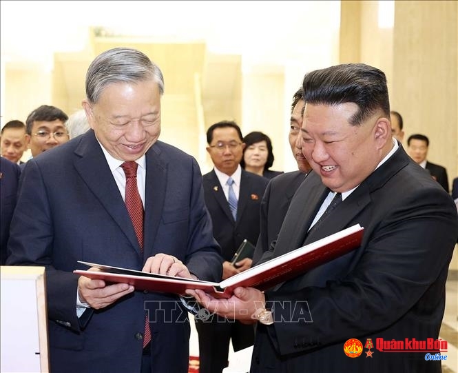 Tổng Bí thư Tô Lâm và Tổng Bí thư, Chủ tịch Quốc vụ Kim Jong Un đã cùng ôn lại và bày tỏ trân trọng mối quan hệ hữu nghị truyền thống giữa hai Đảng, hai nước do Chủ tịch Hồ Chí Minh và Chủ tịch Kim Nhật Thành đích thân xây dựng và các thế hệ lãnh đạo hai bên dày công vun đắp, kế thừa và phát huy; sự giúp đỡ lẫn nhau chí nghĩa, chí tình trong những năm tháng cách mạng gian khổ. Hai nhà lãnh đạo bày tỏ vui mừng trước việc quan hệ hai Đảng, hai nước tiếp tục được củng cố và tăng cường, nhất trí cùng thúc đẩy quan hệ Việt Nam - Triều Tiên bước vào giai đoạn phát triển mới thiết thực, hiệu quả hơn, góp phần thực hiện mục tiêu phát triển của mỗi nước, vì hạnh phúc của nhân dân hai nước, vì hòa bình, ổn định, phát triển của khu vực và thế giới.
