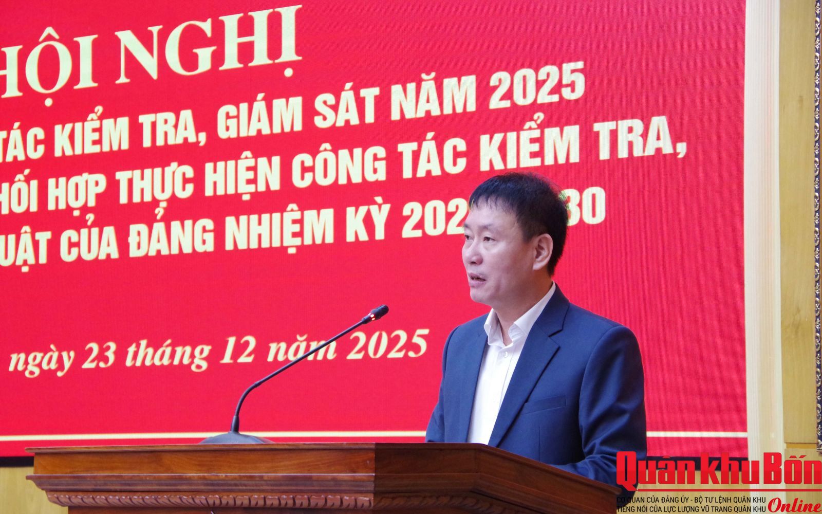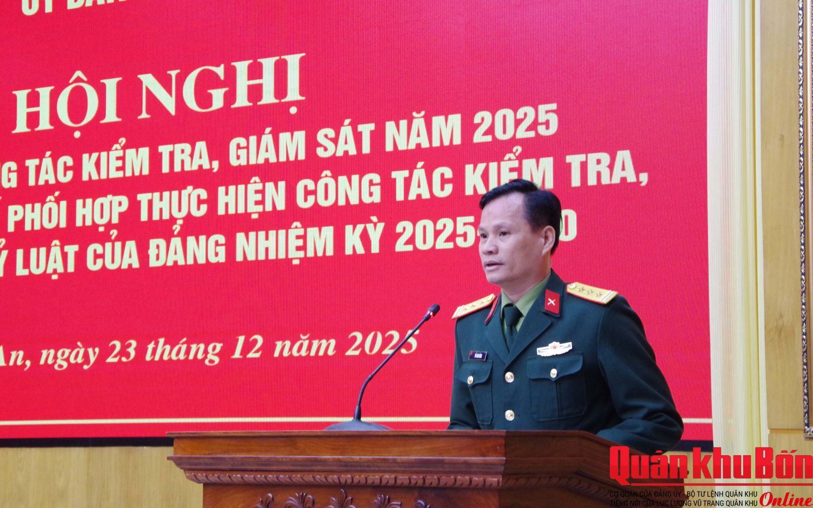 Kết luận Hội nghị, Thiếu tướng Lê Văn Trung, Ủy viên Ban Thường vụ Đảng ủy, Phó Chính ủy Quân khu, Chủ nhiệm Ủy ban Kiểm tra Đảng ủy Quân khu đã đánh giá cao kết quả công tác kiểm tra, giám sát và thi hành kỷ luật của Đảng của cấp ủy, Ủy ban Kiểm tra Đảng ủy các cấp. Để thực hiện tốt nhiệm vụ công tác kiểm tra, giám sát và kỷ luật của Đảng trong Đảng bộ Quân khu và các cơ quan, đơn vị, đồng chí yêu cầu phải tập trung quán triệt, triển khai thực hiện nghiêm Nghị quyết Đại hội Đảng bộ các cấp; các nghị quyết, chỉ thị, kết luận, quy chế, quy định, hướng dẫn về công tác kiểm tra, giám sát nhiệm kỳ 2025 - 2030; chương trình, kế hoạch công tác kiểm tra, giám sát năm 2026.