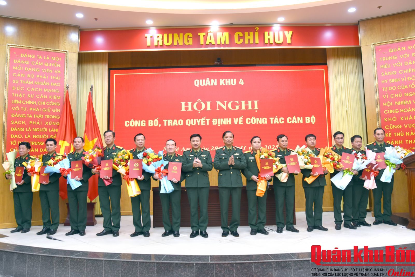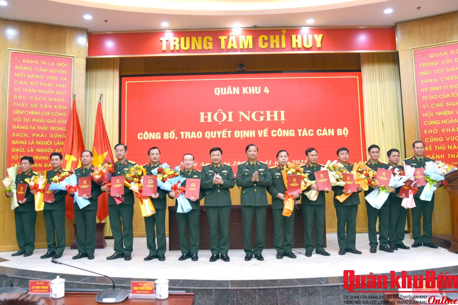 Thực hiện quyết nghị của Thường vụ Quân ủy Trung ương, ngày 25 tháng 11 năm 2025, Bộ trưởng Bộ Quốc phòng đã ký Quyết định nâng lương cấp tướng, nâng lương, thăng quân hàm cấp đại tá, thượng tá cho 47 đồng chí cán bộ thuộc Quân khu 4 và thông báo nhất trí cho Quân khu 4 Quyết định thăng quân hàm, nâng lương theo thẩm quyền.