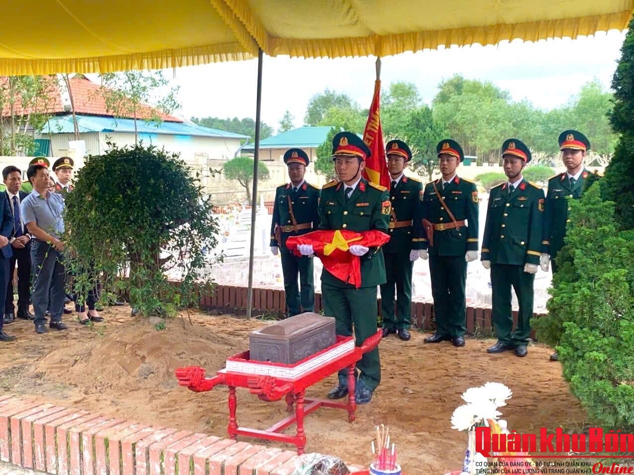 Sau lễ truy điệu, hài cốt liệt sĩ được cấp ủy, chính quyền và lực lượng vũ trang địa phương tổ chức an táng tại Nghĩa trang liệt sĩ Hải Thượng, tỉnh Quảng Trị.