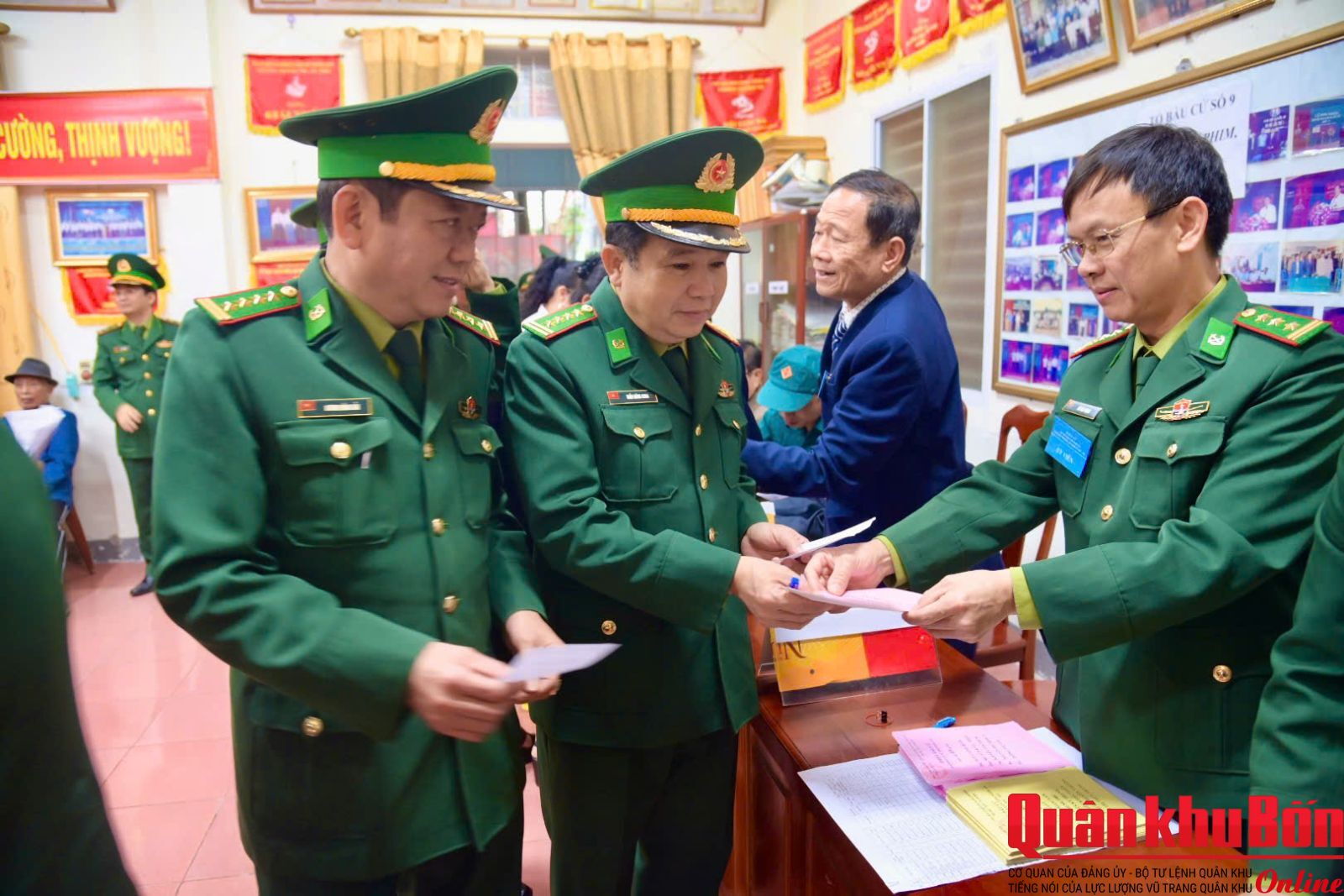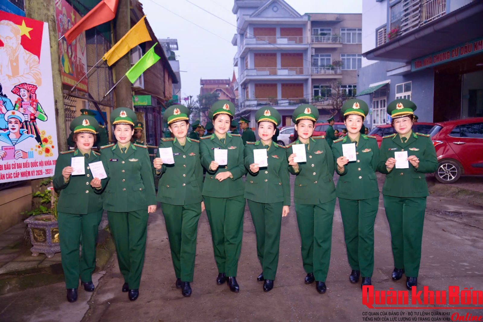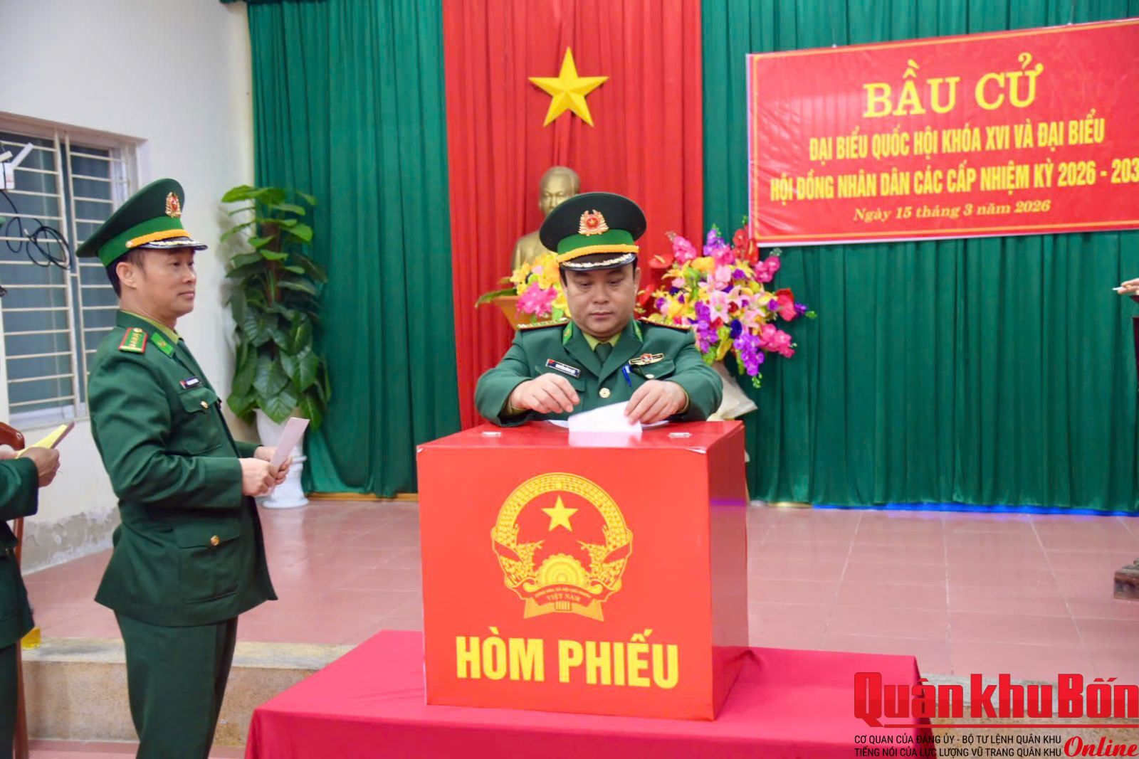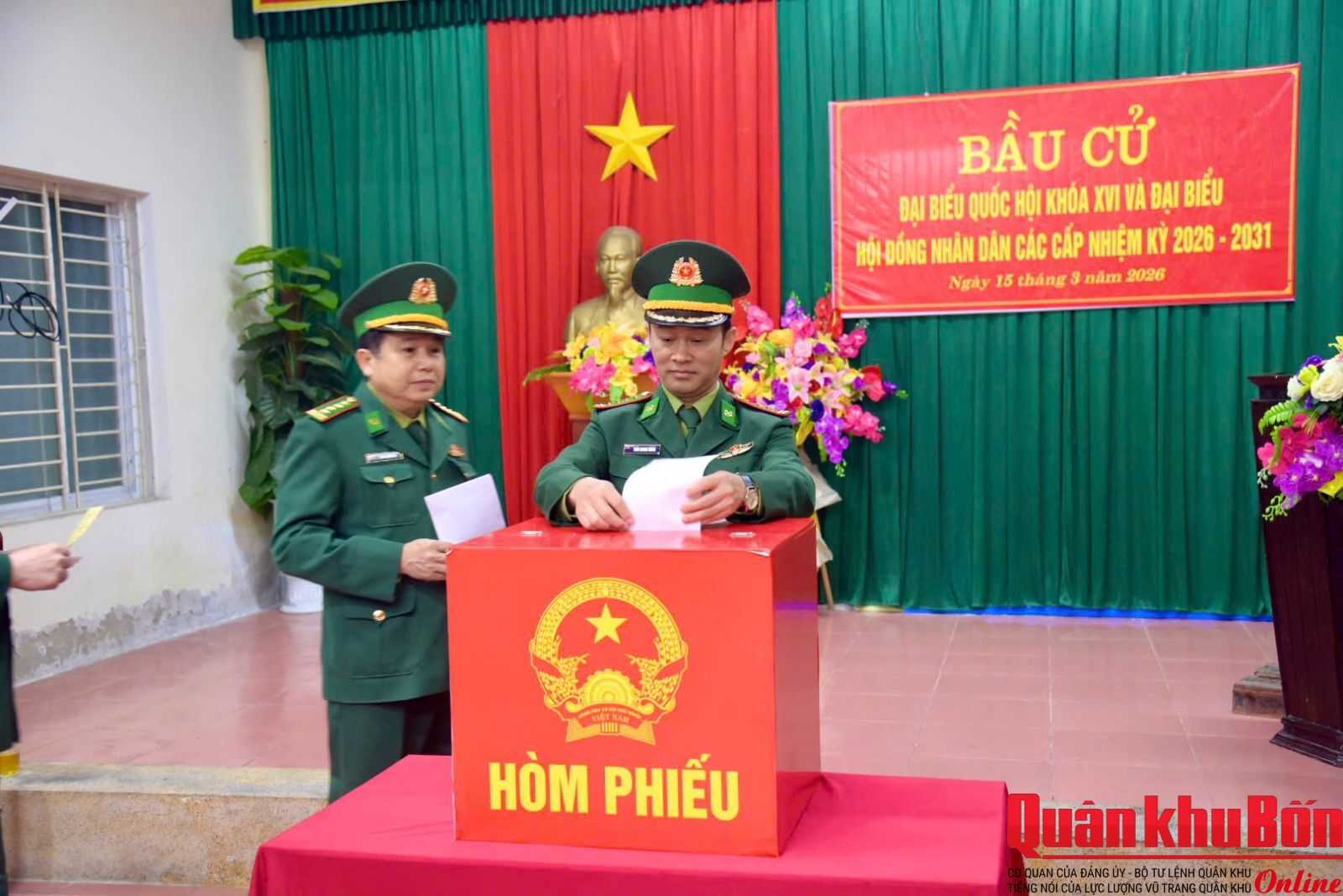 Ngay từ sáng sớm, tại khu vực bỏ phiếu số 9 (các khối 16, khối 17, cơ quan Ban Chỉ huy Bộ đội Biên phòng) của phường Trường Vinh, tỉnh Nghệ An, cán bộ, chiến sĩ đã có mặt đông đủ, chỉnh tề trong quân phục, tham gia các bước của quy trình bầu cử theo đúng quy định. Công tác tổ chức được triển khai chặt chẽ, khoa học; khu vực bỏ phiếu được trang trí trang nghiêm, tạo không khí phấn khởi, trang trọng của ngày hội non sông.