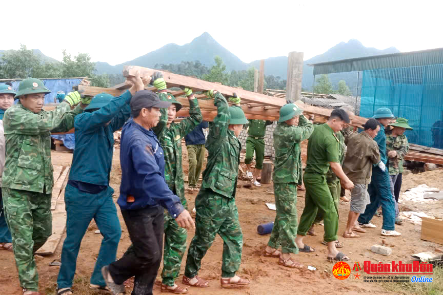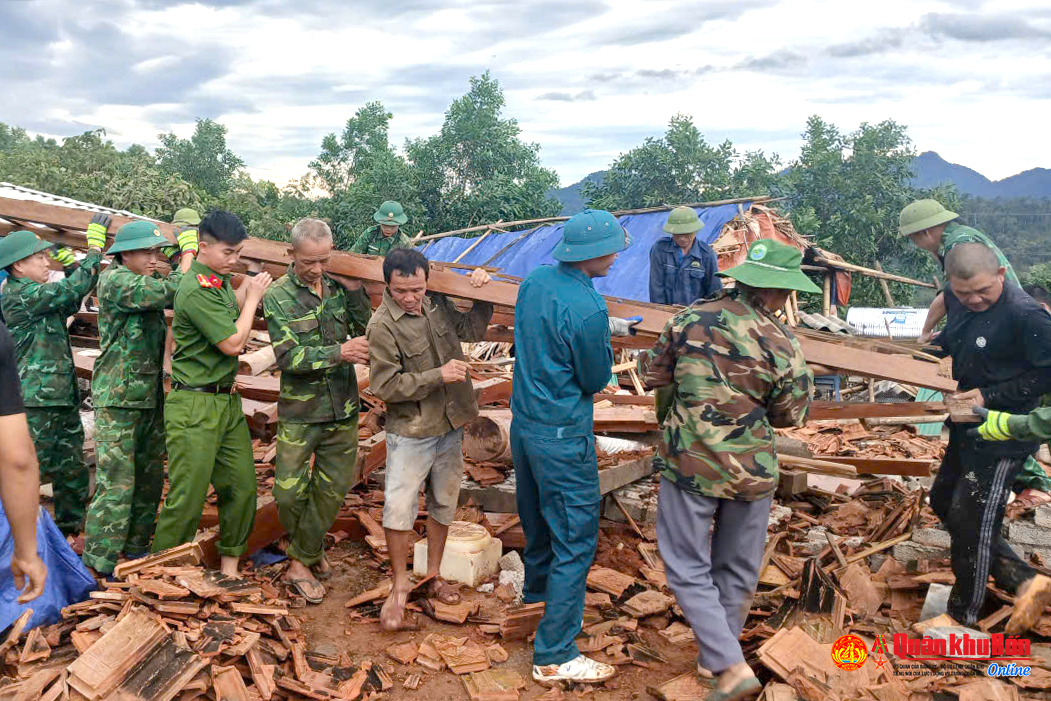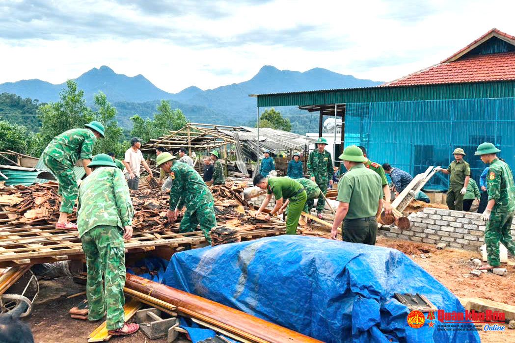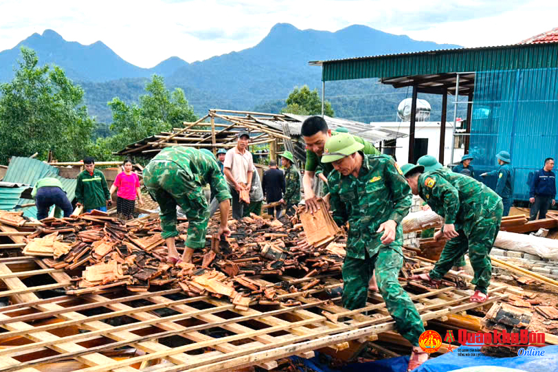 Nghệ An: Bộ đội giúp Nhân dân khắc phục hậu quả lốc xoáy tại xã Thông Thụ