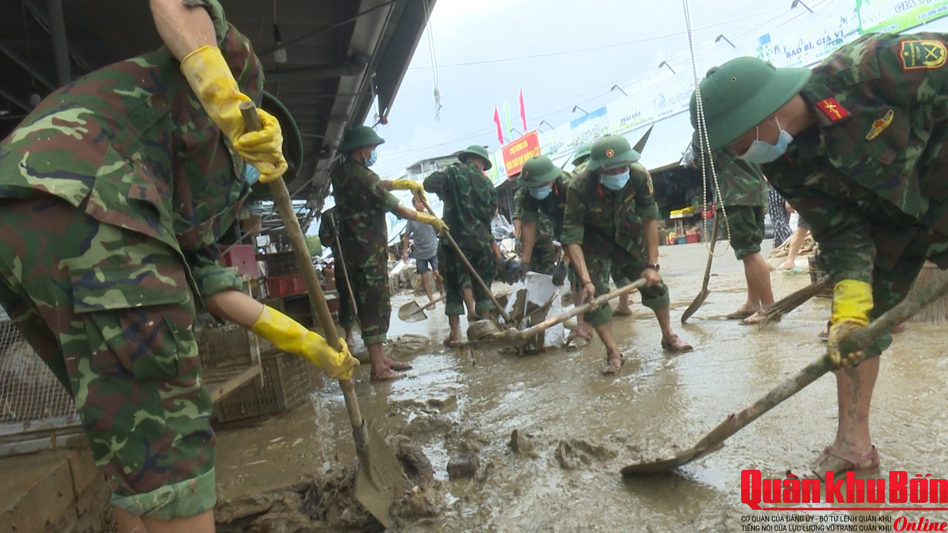 Sau những ngày mưa lớn kéo dài gây ngập sâu trên diện rộng, sau khi nước lũ vừa rút, nhiều tuyến phố, khu dân cư, trường học và chợ trên địa bàn thành phố Huế vẫn còn ngổn ngang bùn đất, rác thải, cây đổ… Cùng với chính quyền và nhân dân địa phương, lực lượng vũ trang Quân khu 4 đã đồng loạt ra quân trên nhiều địa bàn trọng điểm, khẩn trương khắc phục hậu quả mưa lũ, sớm đưa cuộc sống trở lại bình thường.