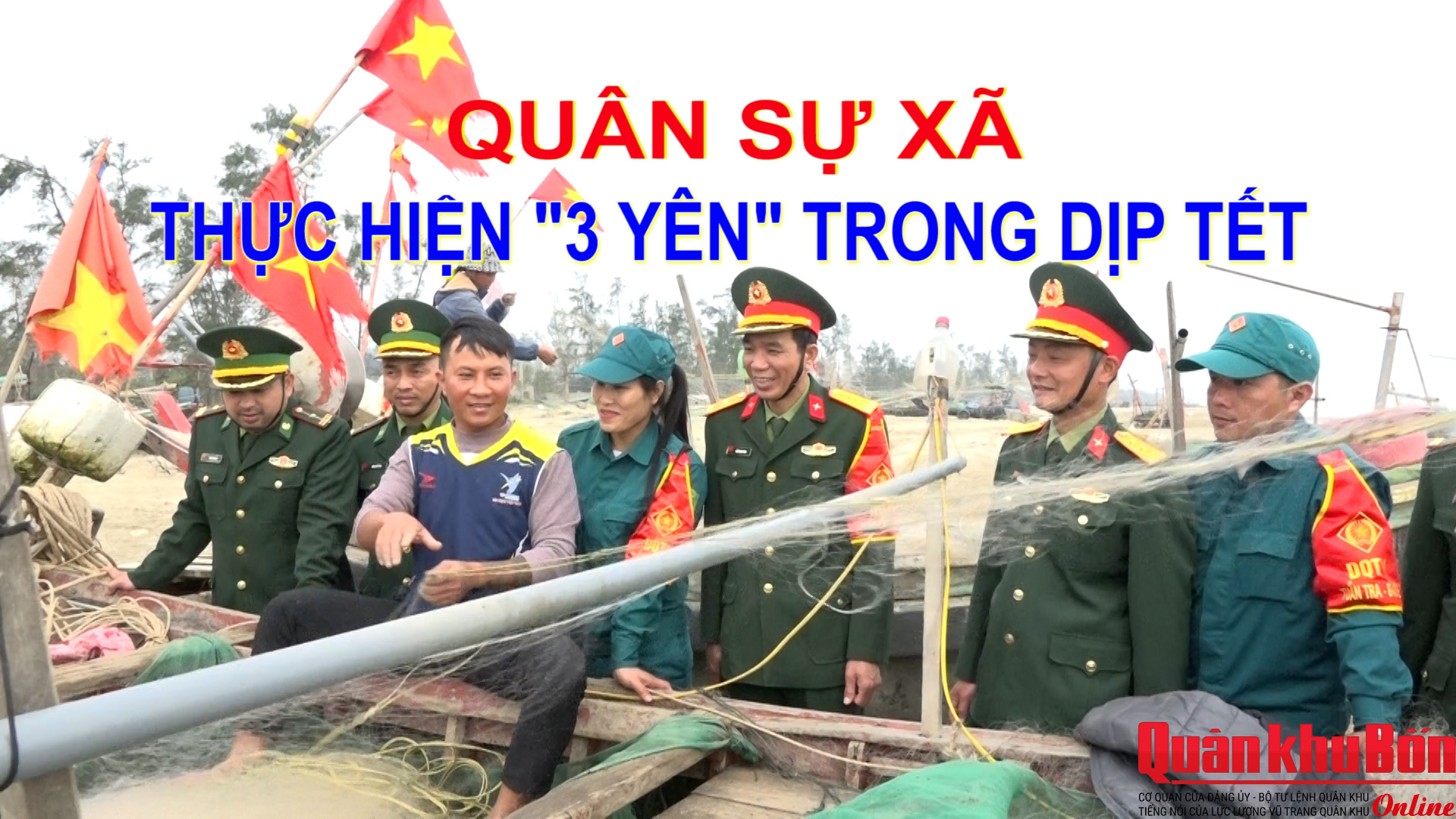 Trong không khí tưng bừng của toàn Đảng, toàn dân và toàn quân ta hân hoan chào mừng thành công Đại hội toàn quốc lần thứ XIV, mừng Đảng, mừng Xuân, mừng đất nước vững bước vào kỷ nguyên mới, những ngày Tết đến, Xuân về cán bộ, nhân viên Ban CHQS các xã, phường, đặc khu trên địa bàn Quân khu 4 cũng đang thi đua thực hiện tốt mục tiêu “3 yên” trong dịp tết đó là yên dân, yên địa bàn và yên biên giới, hải đảo.
